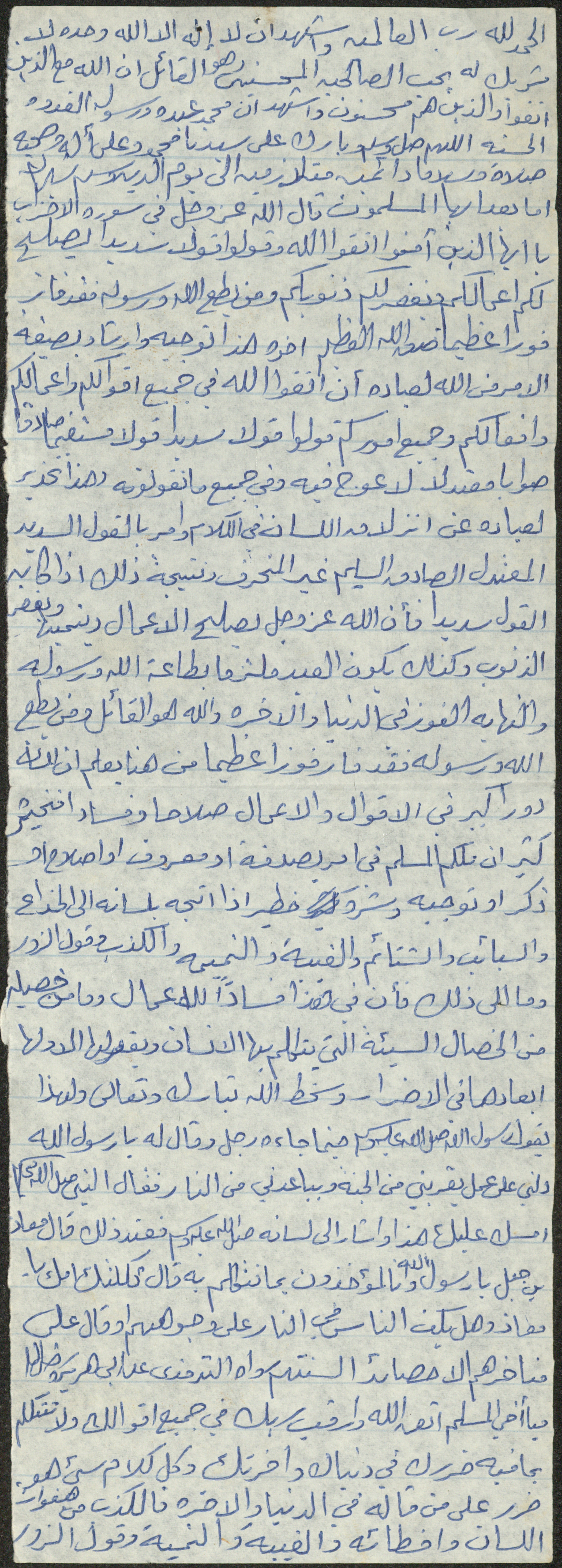 نص خطبة صلاة جمعة للشيخ سعادة حسن ذيب المراشدة، إمام وخطيب مسجد في قرية عقربا ما بين عامي 1962 و2002، تحدث فيها عن مغفرة الله للذنوب.
