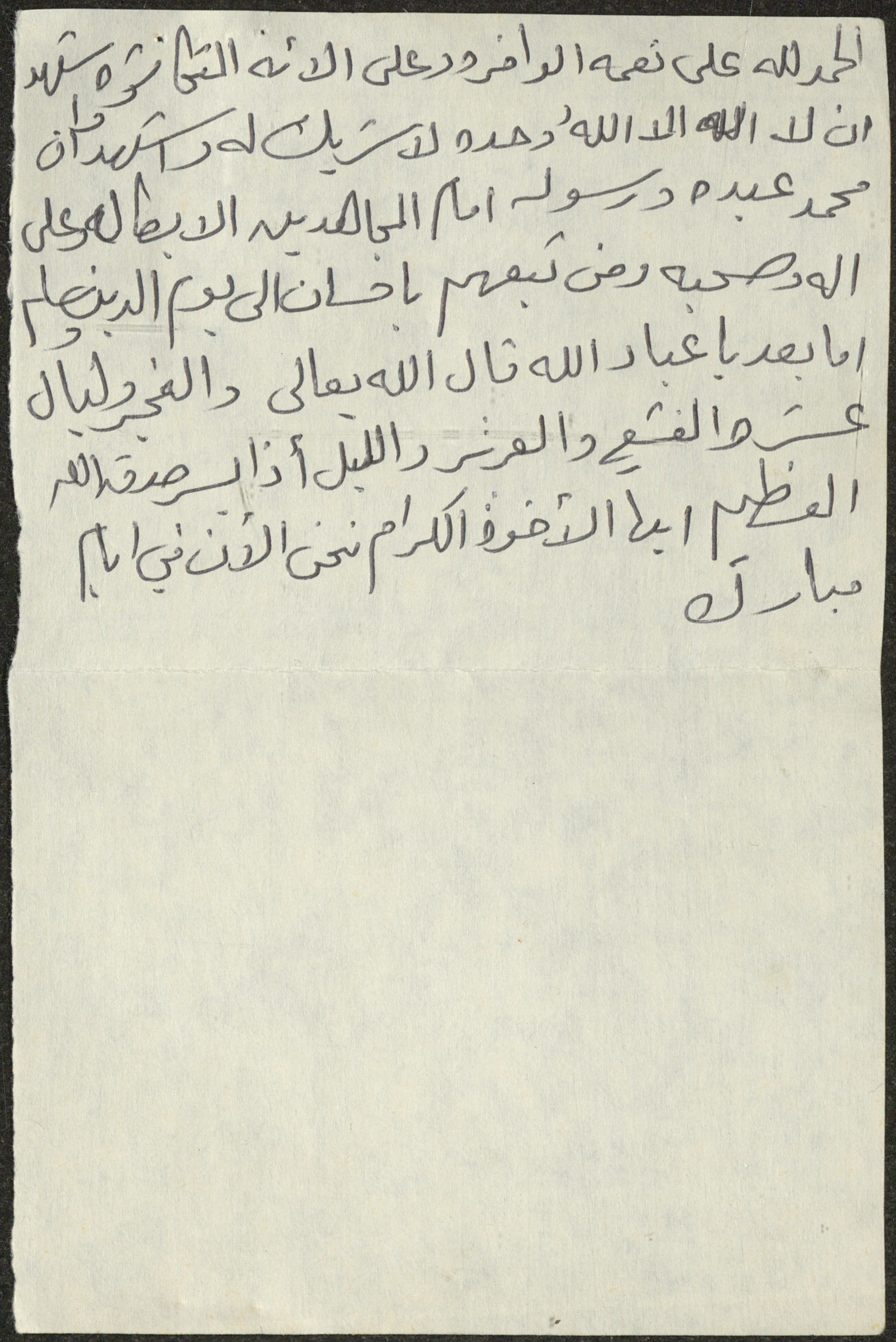 نص خطبة صلاة جمعة للشيخ سعادة حسن ذيب المراشدة، إمام وخطيب مسجد في قرية عقربا ما بين عامي 1962 و2002، أكد فيها على أجر ومكانة المجاهدين.