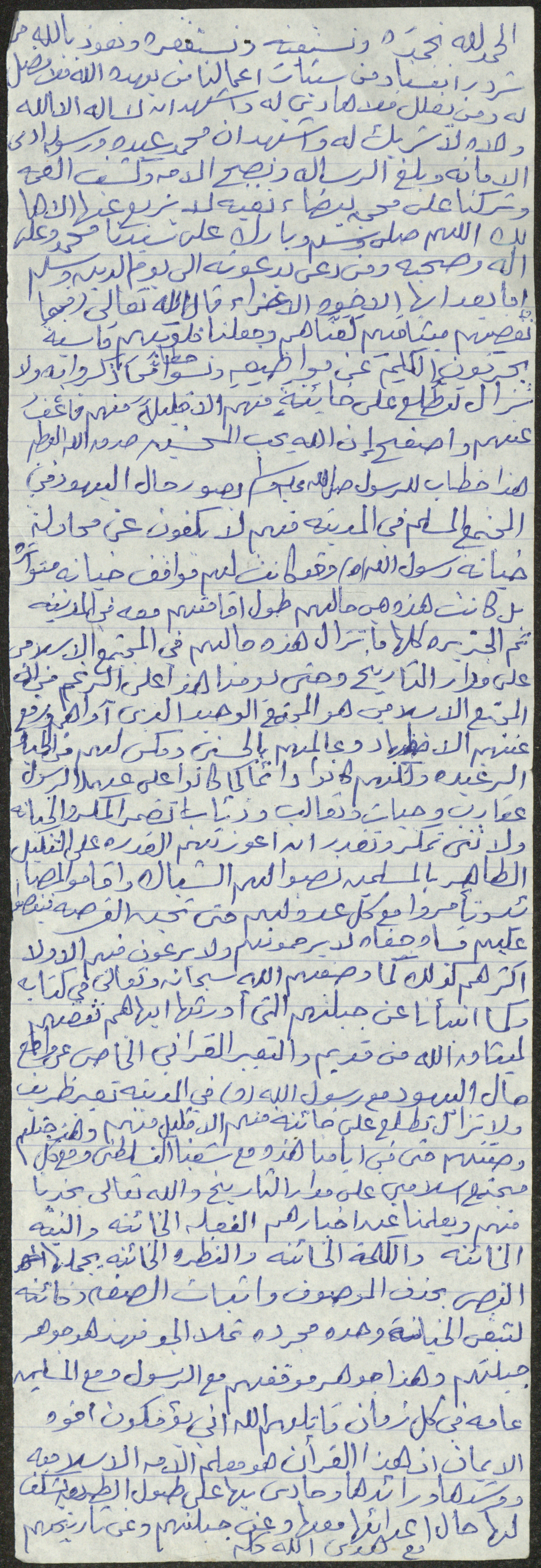 نص خطبة صلاة جمعة للشيخ سعادة حسن ذيب المراشدة، إمام وخطيب مسجد في قرية عقربا ما بين عامي 1962 و2002، يتحدث فيها عن محاولات اليهود المتكررة لخيانة النبي محمد في المدينة المنورة.