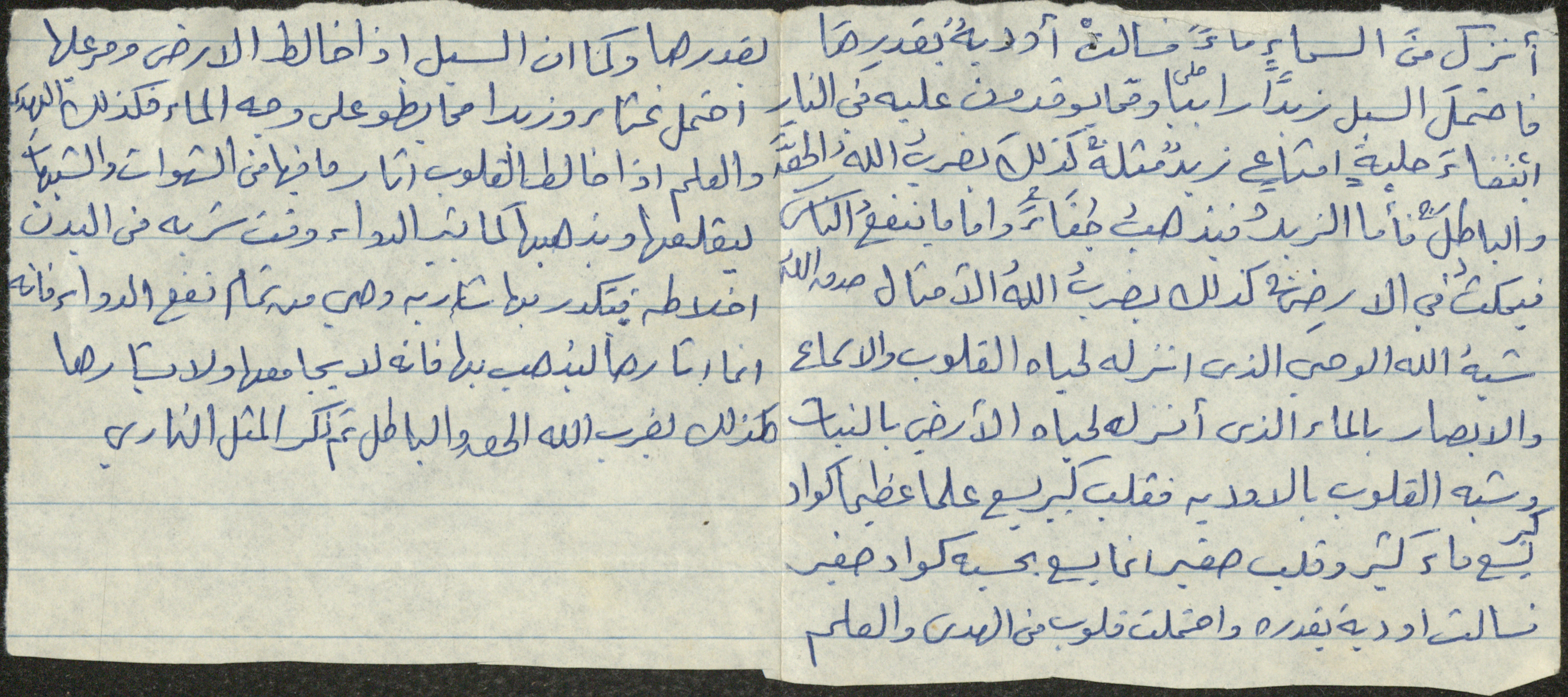 نص خطبة صلاة جمعة للشيخ سعادة حسن ذيب المراشدة، إمام وخطيب مسجد في قرية عقربا ما بين عامي 1962 و2002، تحدث فيها عن تشبيه الله للوحي الذي أنزله لإحياء القلوب والأسماع والأبصار بالماء الذي أنزله لإحياء الأرض.
