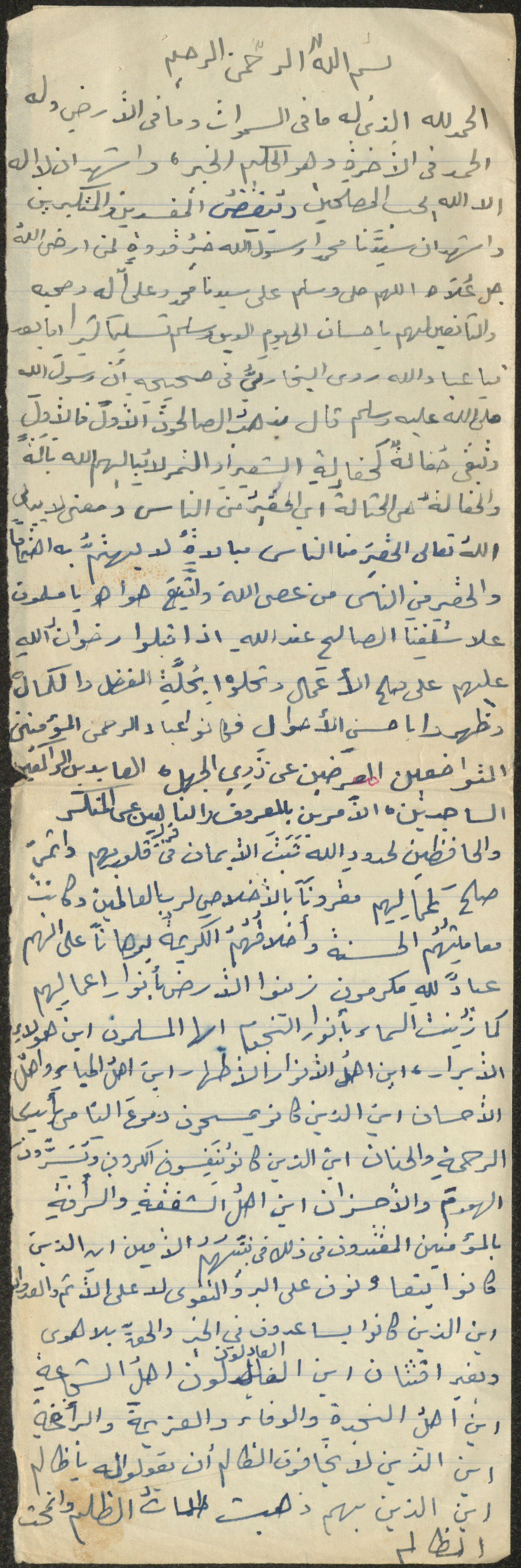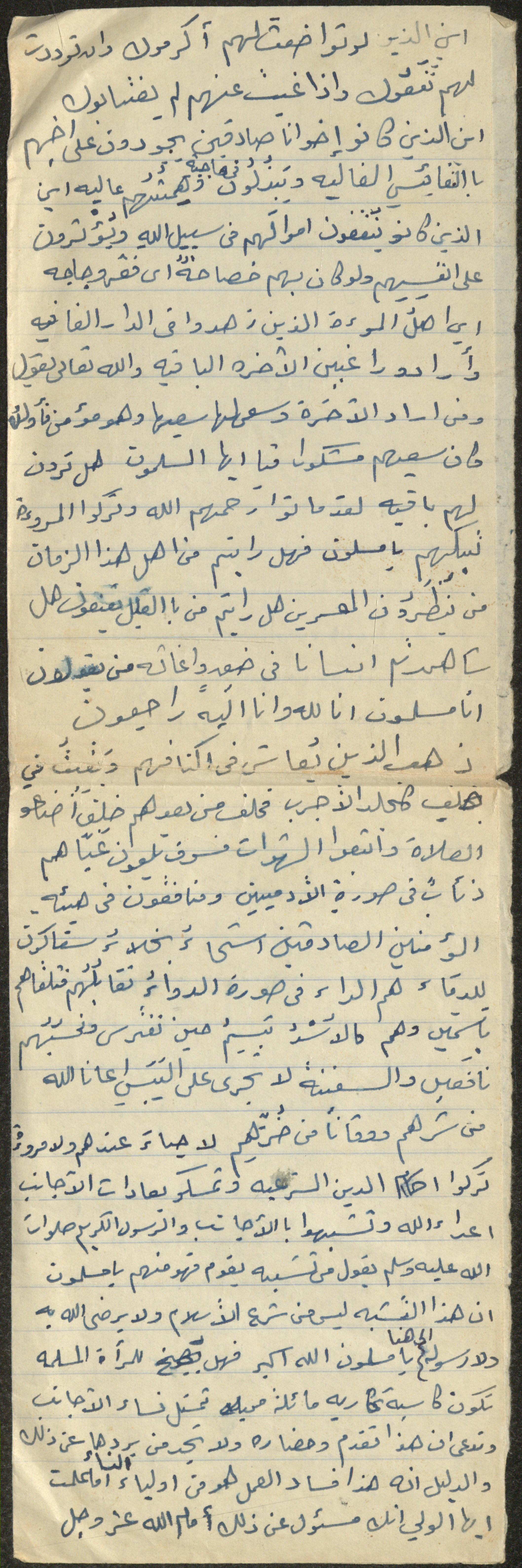 نص خطبة صلاة جمعة للشيخ سعادة حسن ذيب المراشدة، إمام وخطيب مسجد في قرية عقربا ما بين عامي 1962 و2002، يؤكد فيها على أن الله يحب من عباده المصلحين المتواضعين.