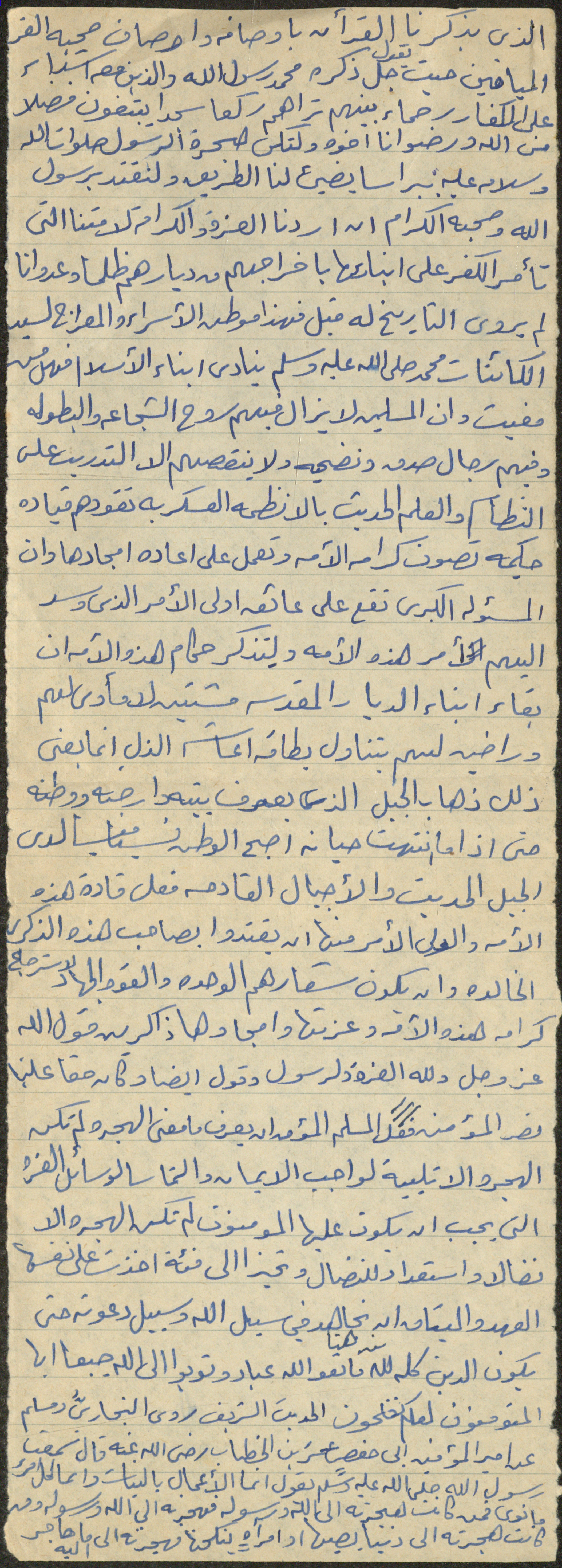 نص خطبة صلاة جمعة للشيخ سعادة حسن ذيب المراشدة، إمام وخطيب مسجد في قرية عقربا ما بين عامي 1962 و2002، تحدث فيها عن تشتت أهالي فلسطين وأهمية الجهاد.