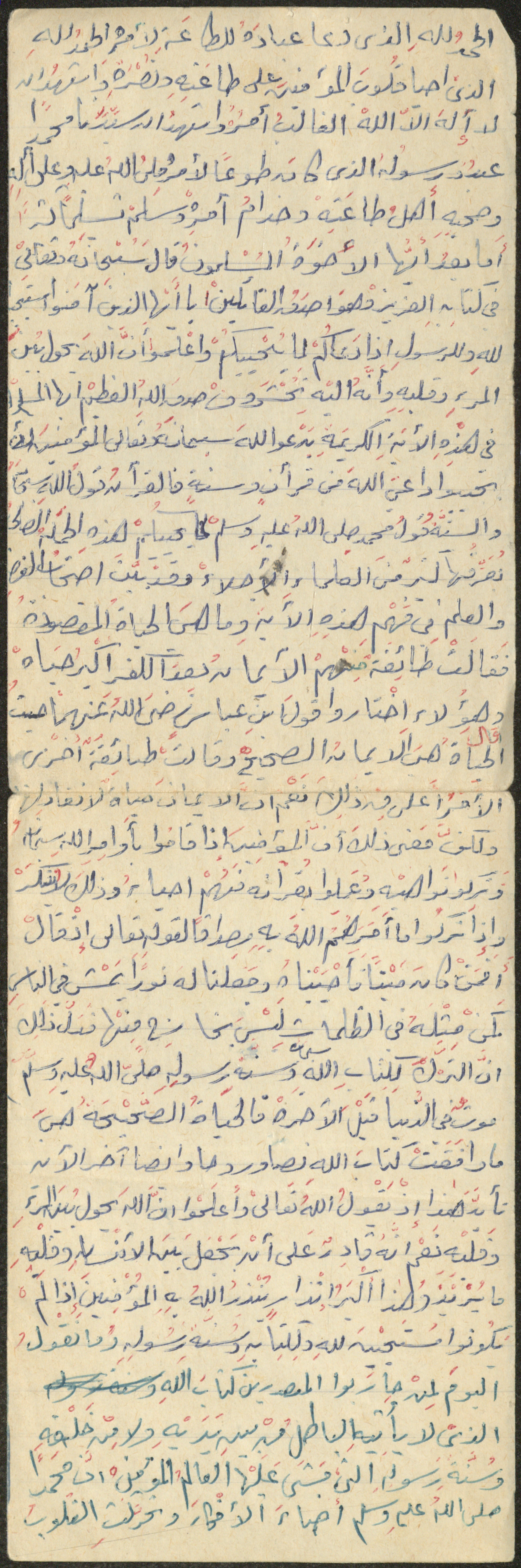 نص خطبة صلاة جمعة للشيخ سعادة حسن ذيب المراشدة، إمام وخطيب مسجد في قرية عقربا ما بين عامي 1962 و2002، تحدث فيها عن حال من يترك عبادة الله.