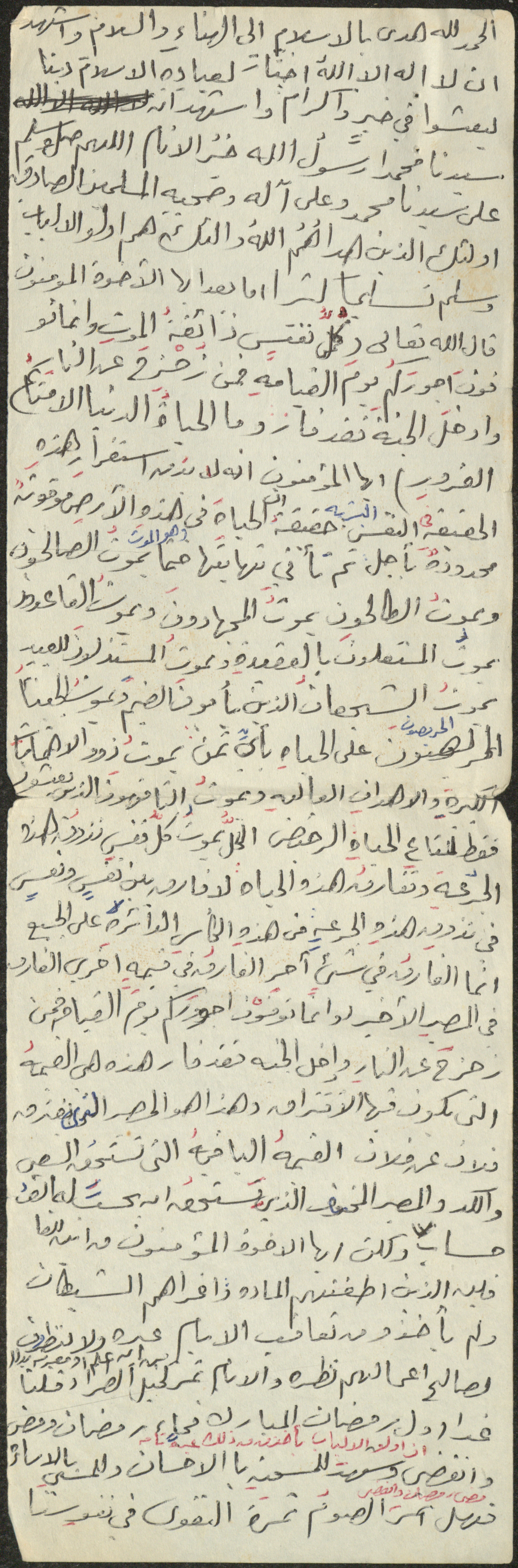 نص خطبة صلاة جمعة للشيخ سعادة حسن ذيب المراشدة، إمام وخطيب مسجد في قرية عقربا ما بين عامي 1962 و2002، ذكر فيها أن الحياة فانية وأن الأجل بيد الله.