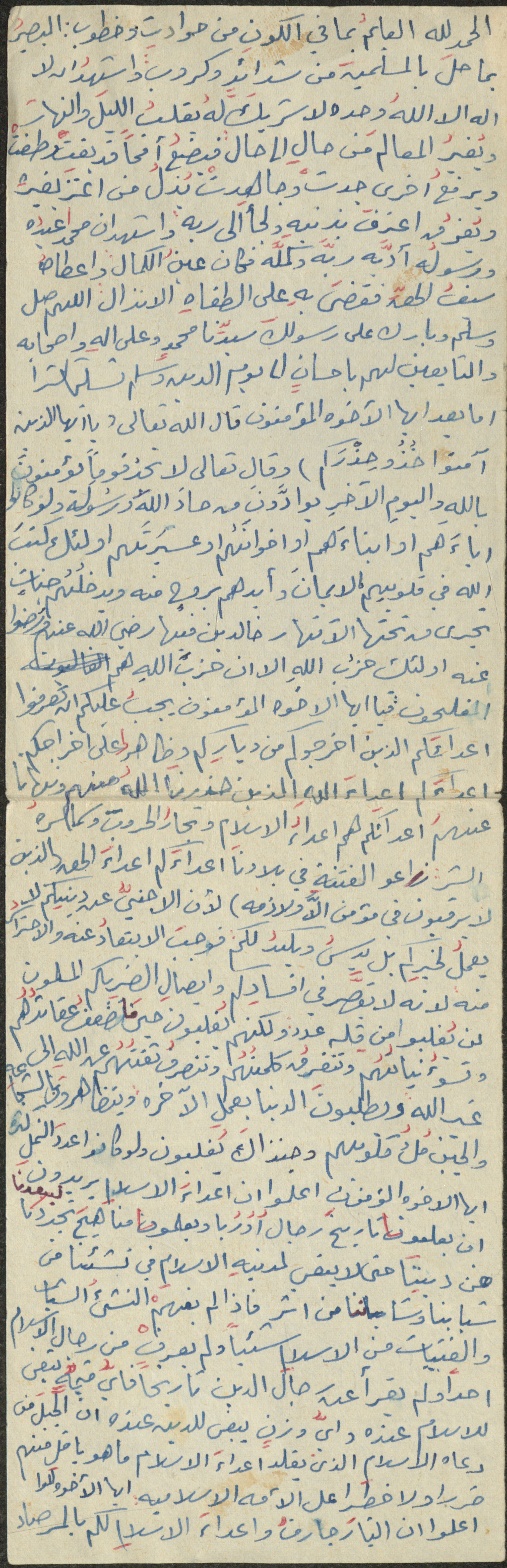 نص خطبة صلاة جمعة للشيخ سعادة حسن ذيب المراشدة، إمام وخطيب مسجد في قرية عقربا ما بين عامي 1962 و2002، تحدث فيها عن وجوب الحذر وعدم اتخاذ الأعداء مقربين وأصدقاء.