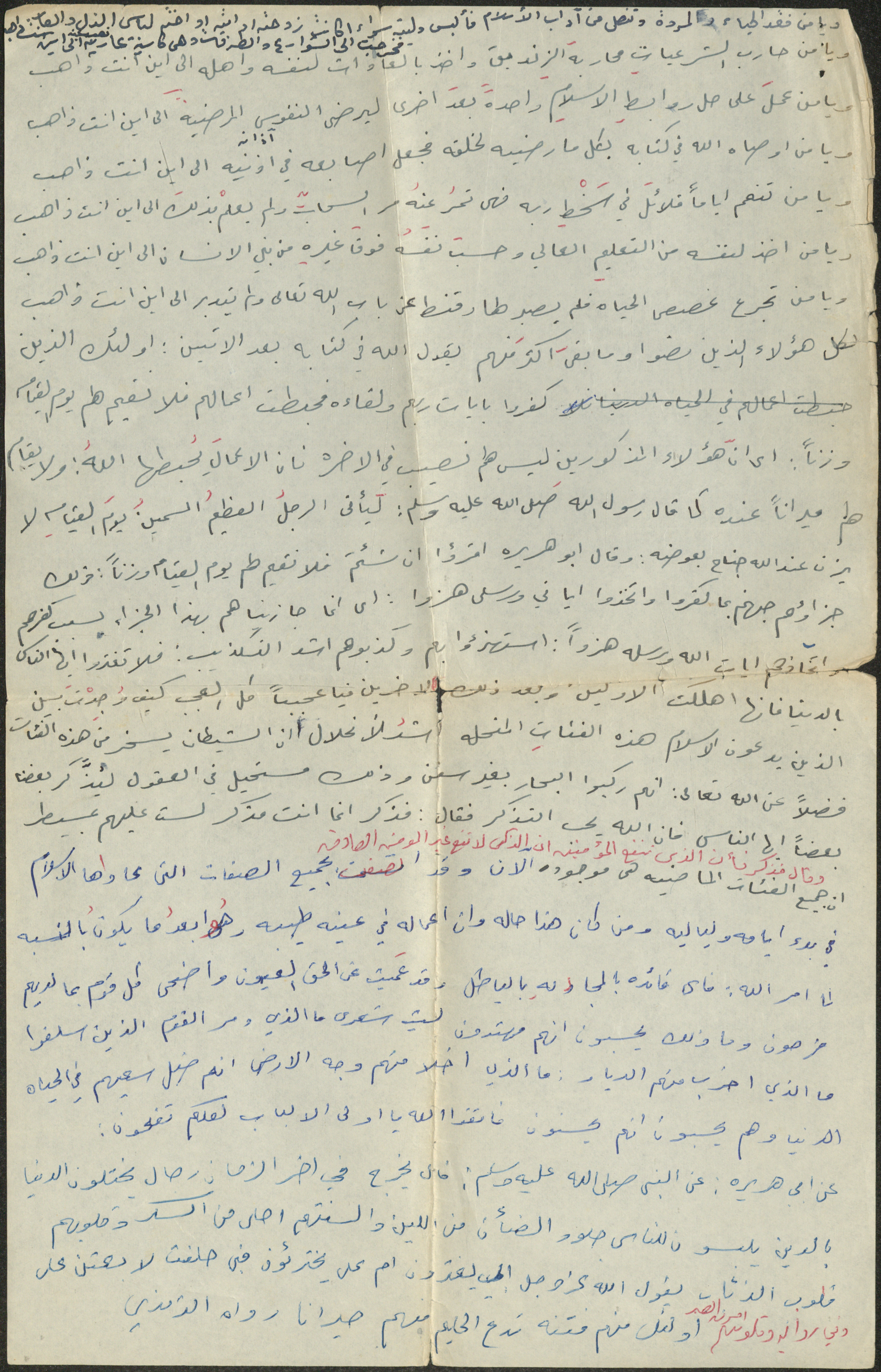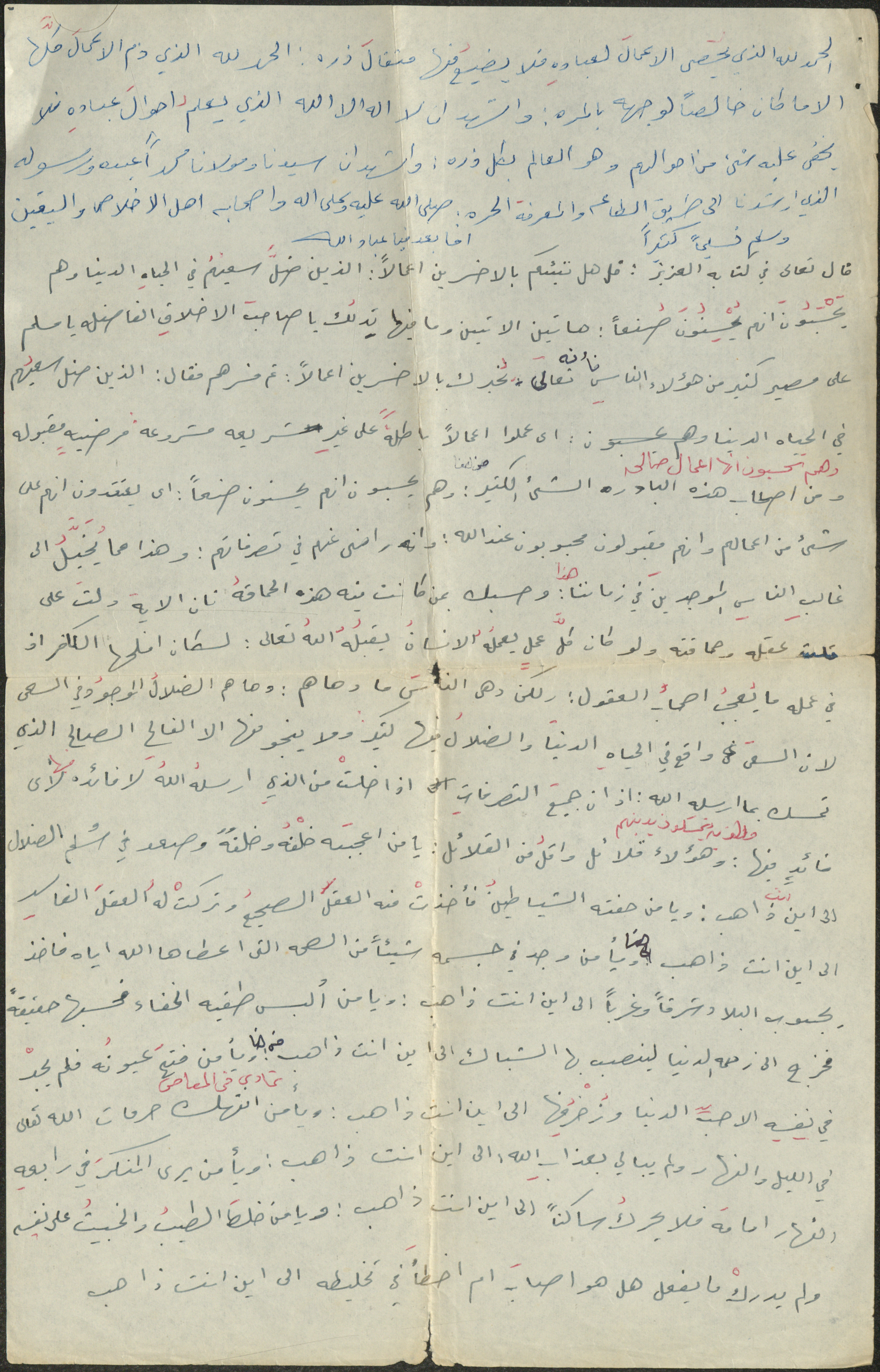 نص خطبة صلاة جمعة للشيخ سعادة حسن ذيب المراشدة، إمام وخطيب مسجد في قرية عقربا ما بين عامي 1962 و2002، تحدث فيها عن الأعمال الخالصة لله وحده.