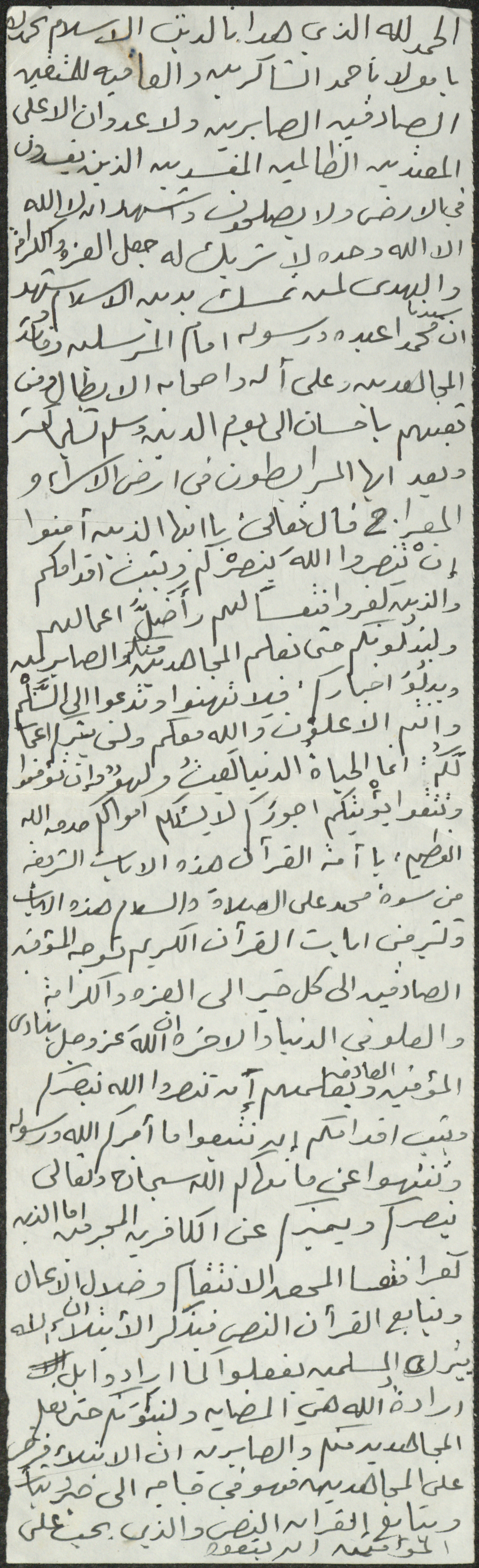 نص خطبة صلاة جمعة للشيخ سعادة حسن ذيب المراشدة، إمام وخطيب مسجد في قرية عقربا ما بين عامي 1962 و2002، تحدث فيها عن الصمود والجهاد في أرض الإسراء والمعراج.