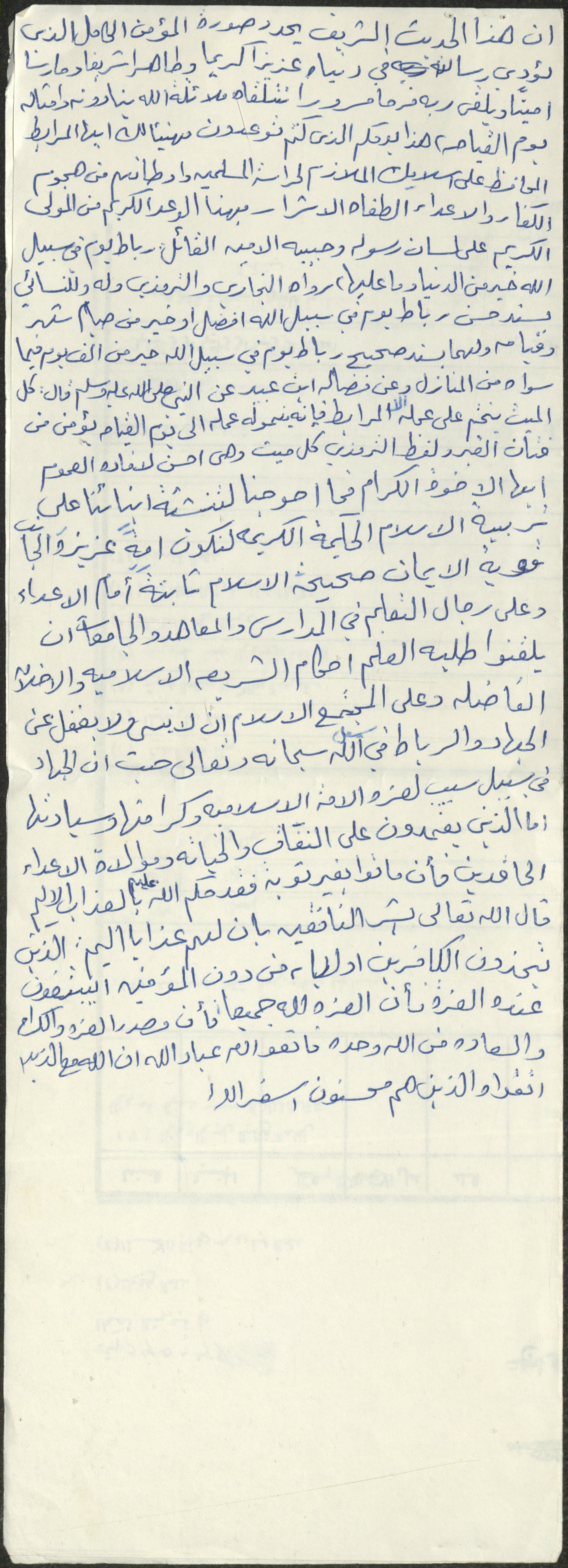 نص خطبة صلاة جمعة للشيخ سعادة حسن ذيب المراشدة، إمام وخطيب مسجد في قرية عقربا ما بين عامي 1962 و2002، تحدث فيها عن الأشخاص الذين لا تمسهم نار جهنم أبداً.