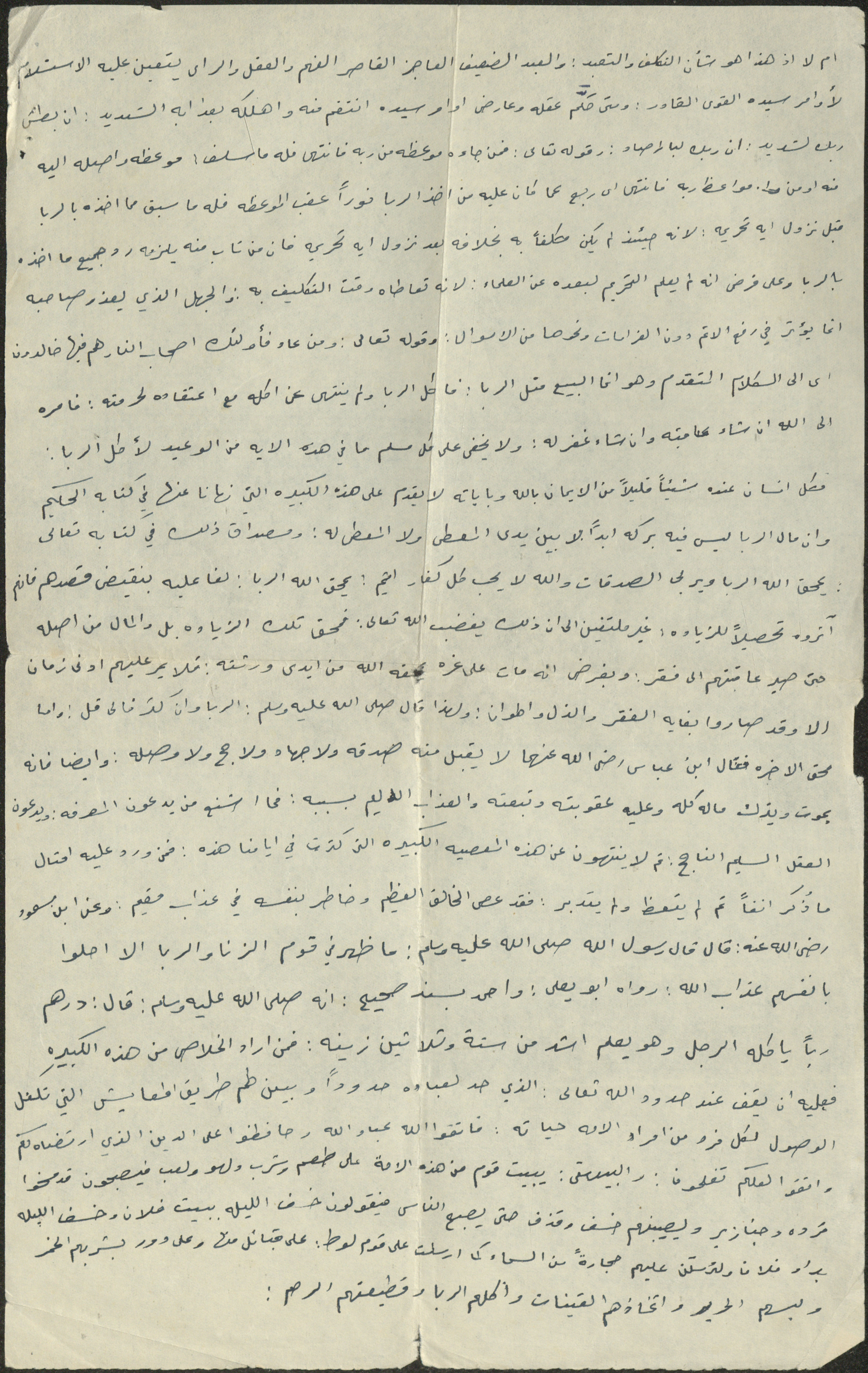 This document shows the text of a Friday Khutba by Sheikh Sa'adeh Hasan Theeb al-Marashdeh, the imam and khatib at Aqraba Mosque from 1962 to 2002, in which he talked about the weak, helpless servant who lacks understanding.