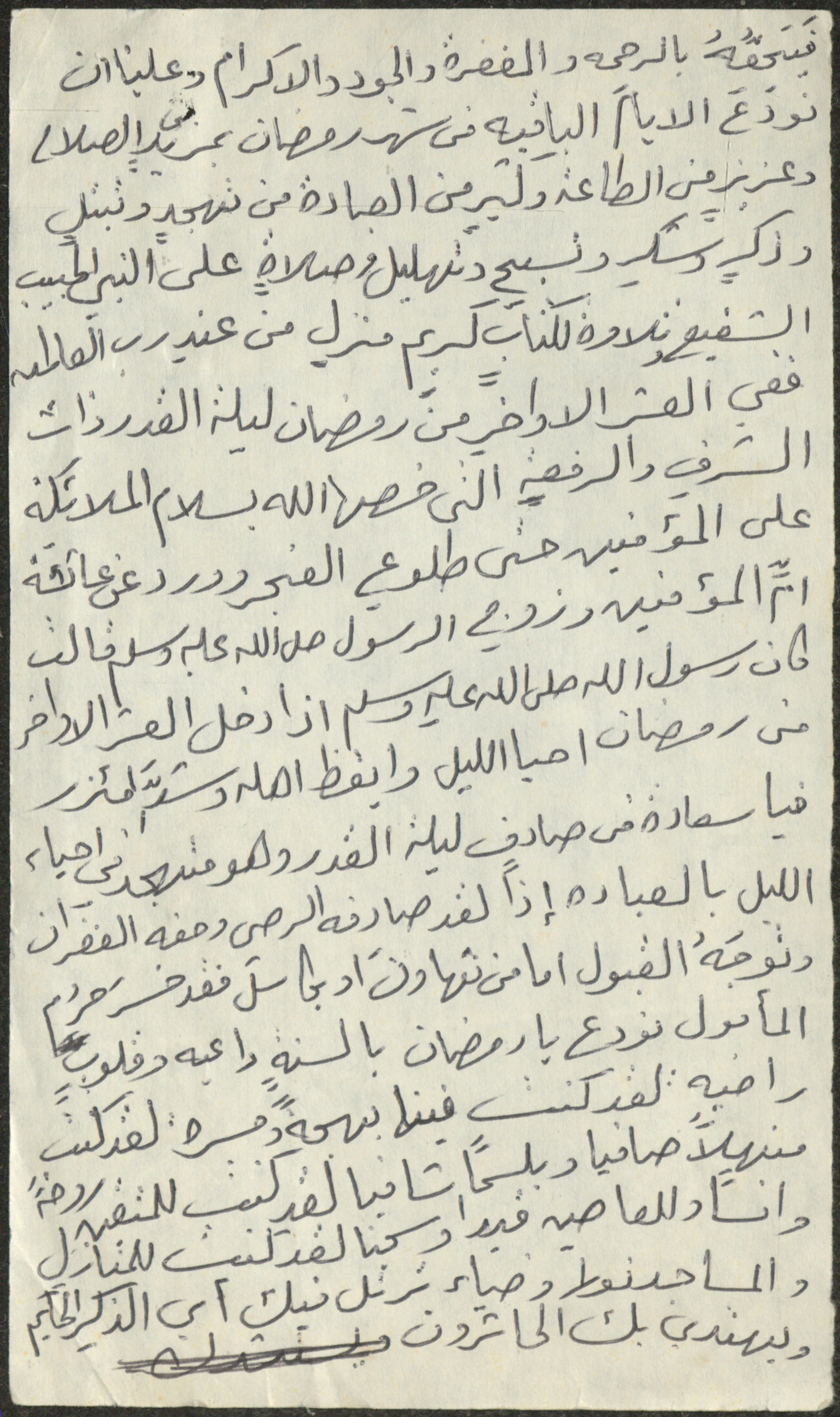 This document shows the text of a Friday Khutba by Sheikh Sa'adeh Hasan Theeb al-Marashdeh, the imam and khatib at Aqraba Mosque from 1962 to 2002, in which he talked about the month of Ramadan.