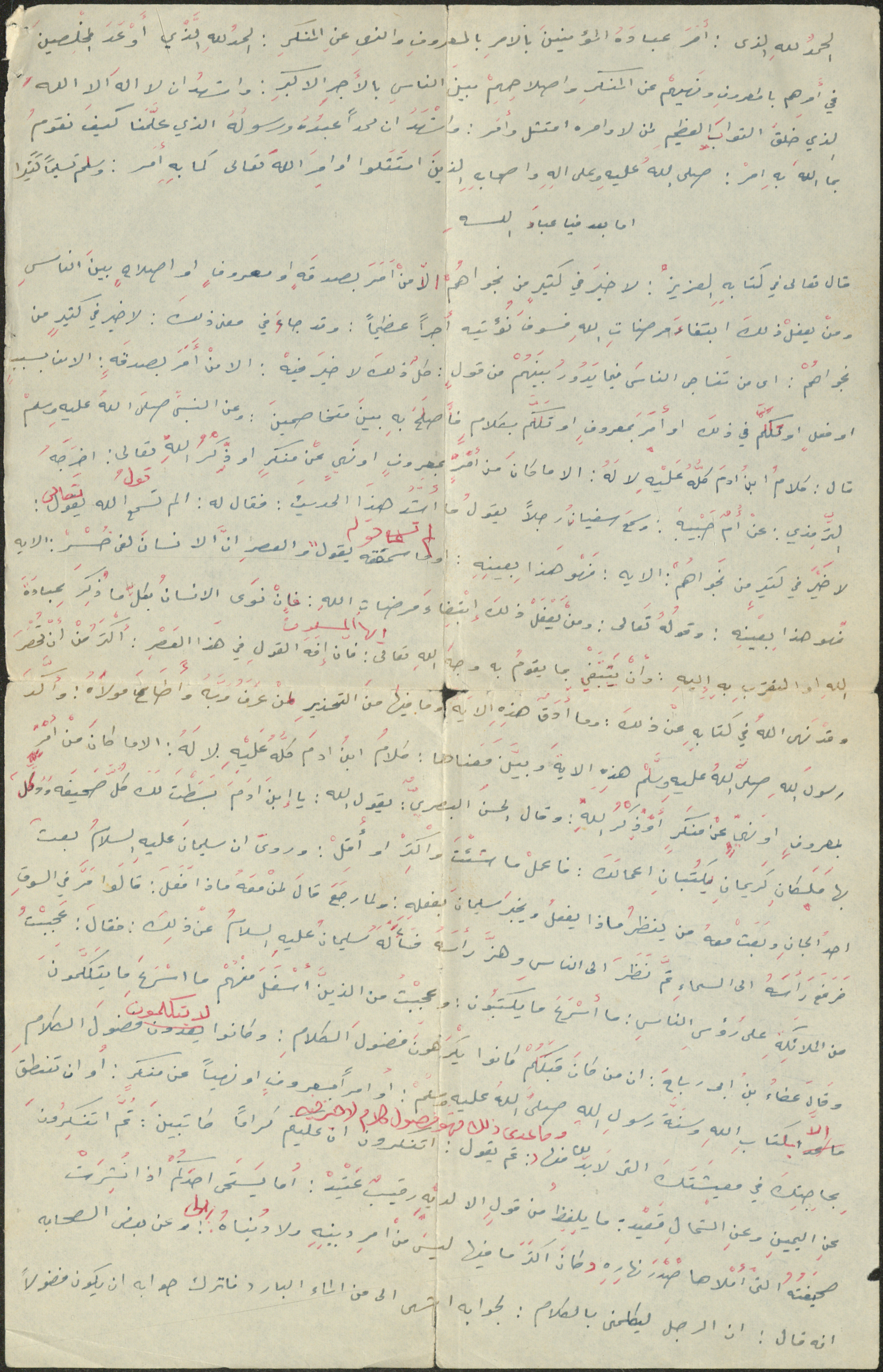 نص خطبة صلاة جمعة للشيخ سعادة حسن ذيب المراشدة، إمام وخطيب مسجد في قرية عقربا ما بين عامي 1962 و2002، يؤكد فيها على أجر من يصلح المتخاصمين من المؤمنين.