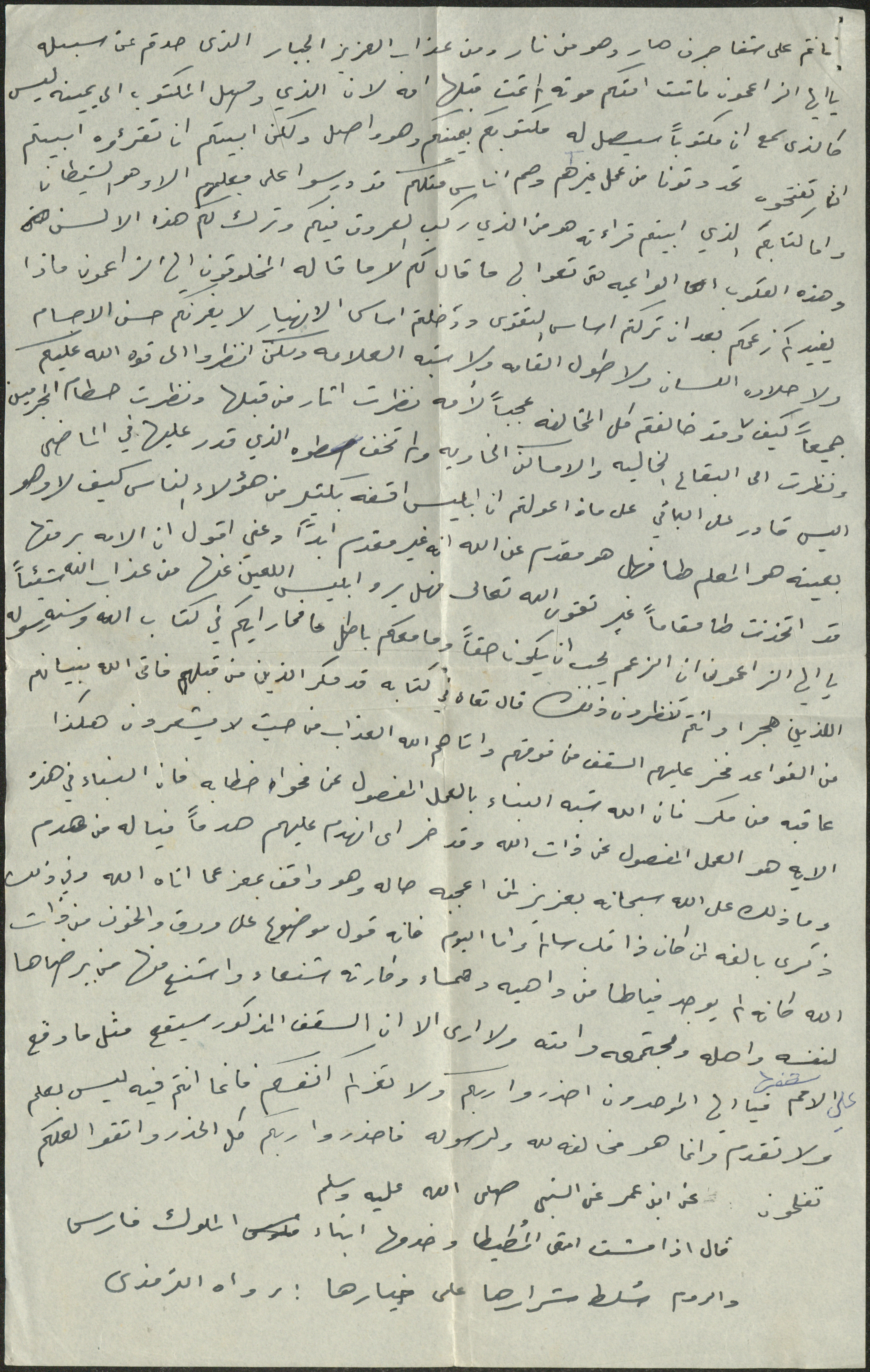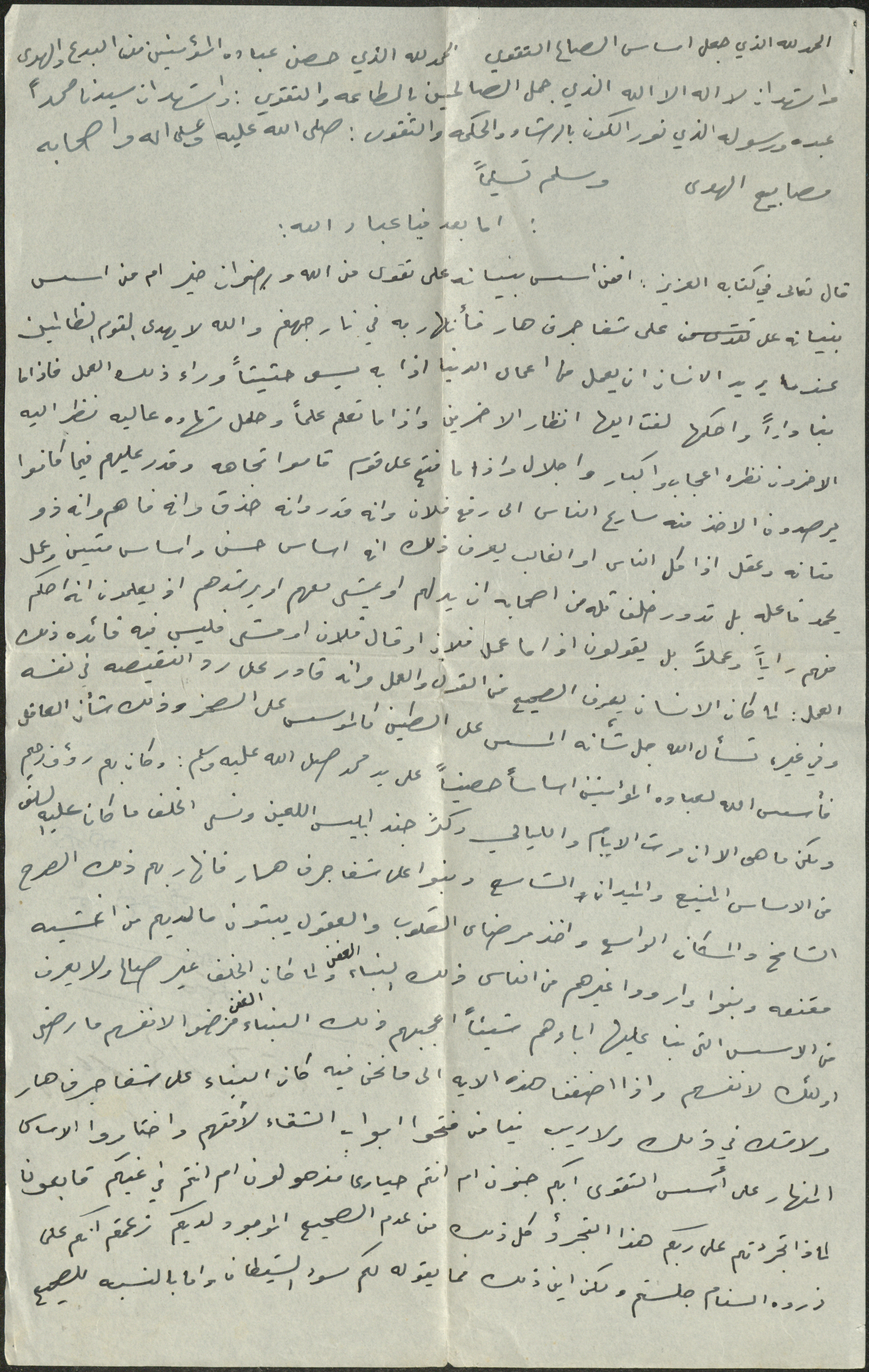 نص خطبة صلاة جمعة للشيخ سعادة حسن ذيب المراشدة، إمام وخطيب مسجد في قرية عقربا ما بين عامي 1962 و2002، تحدث فيها عن التقوى.