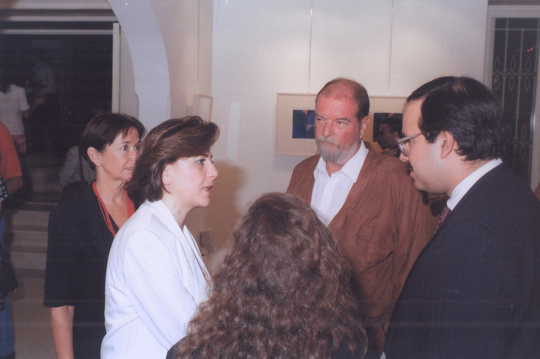 A photograph from the opening of the artist Kamal Boullata's exhibition, Damascus, 1994