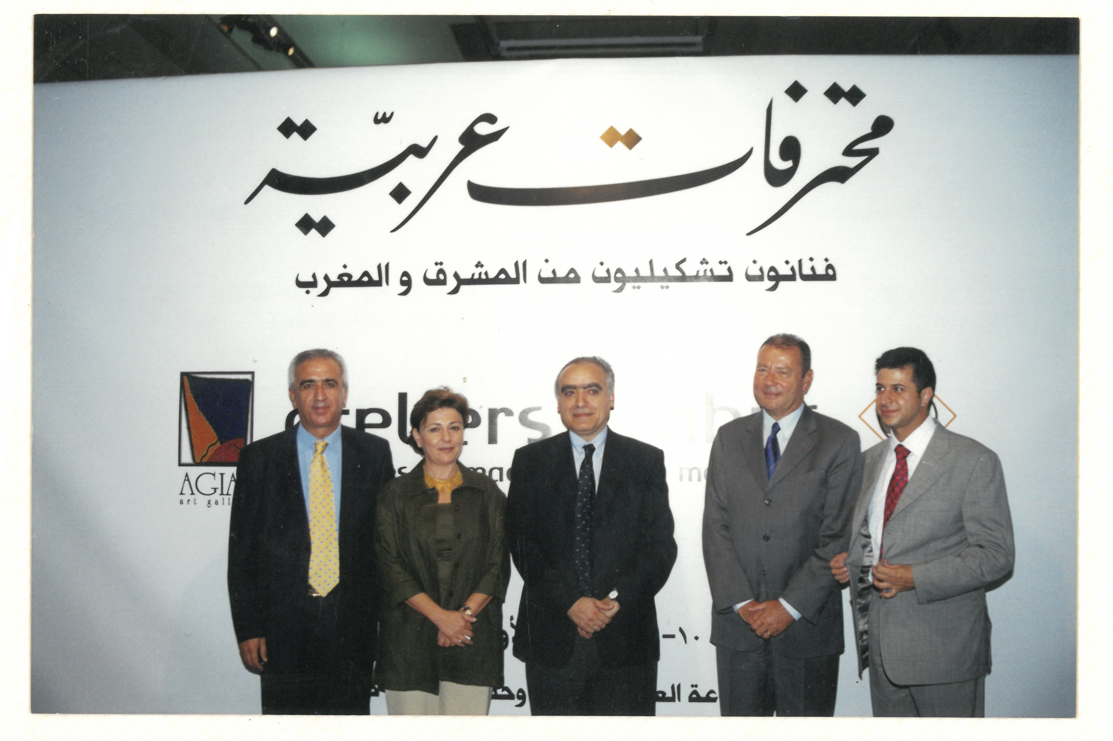 صورة من افتتاح معرض محترفات عربية في قصر اليونسكو في بيروت عام 2001، بتنظيم من غاليري أتاسي وغاليري أجيال، وشارك فيه عدد من الفنانين العرب، وهم: شفيق عبود، أحمد عبد العال، يوسف عبدلكي، محمد أكسواه، أسعد عرابي، إيفيت أشقر، جورج بهجوري، فؤاد بلامين، كمال بلاطة، عبد الرحيم شريف، شوقي شوكيني، أمين الباشا، رفيق كامل، وصلاح مسعودي، عادل السيوي، أحمد الهاجري، محمد قاسمي، راشد قريشي، نازلي مدكور، أحمد معلا، حسن موسى، مهدي مطشر، فيصل سمرا، منى السعودي، ناصر سومي، قويدر التريكي.