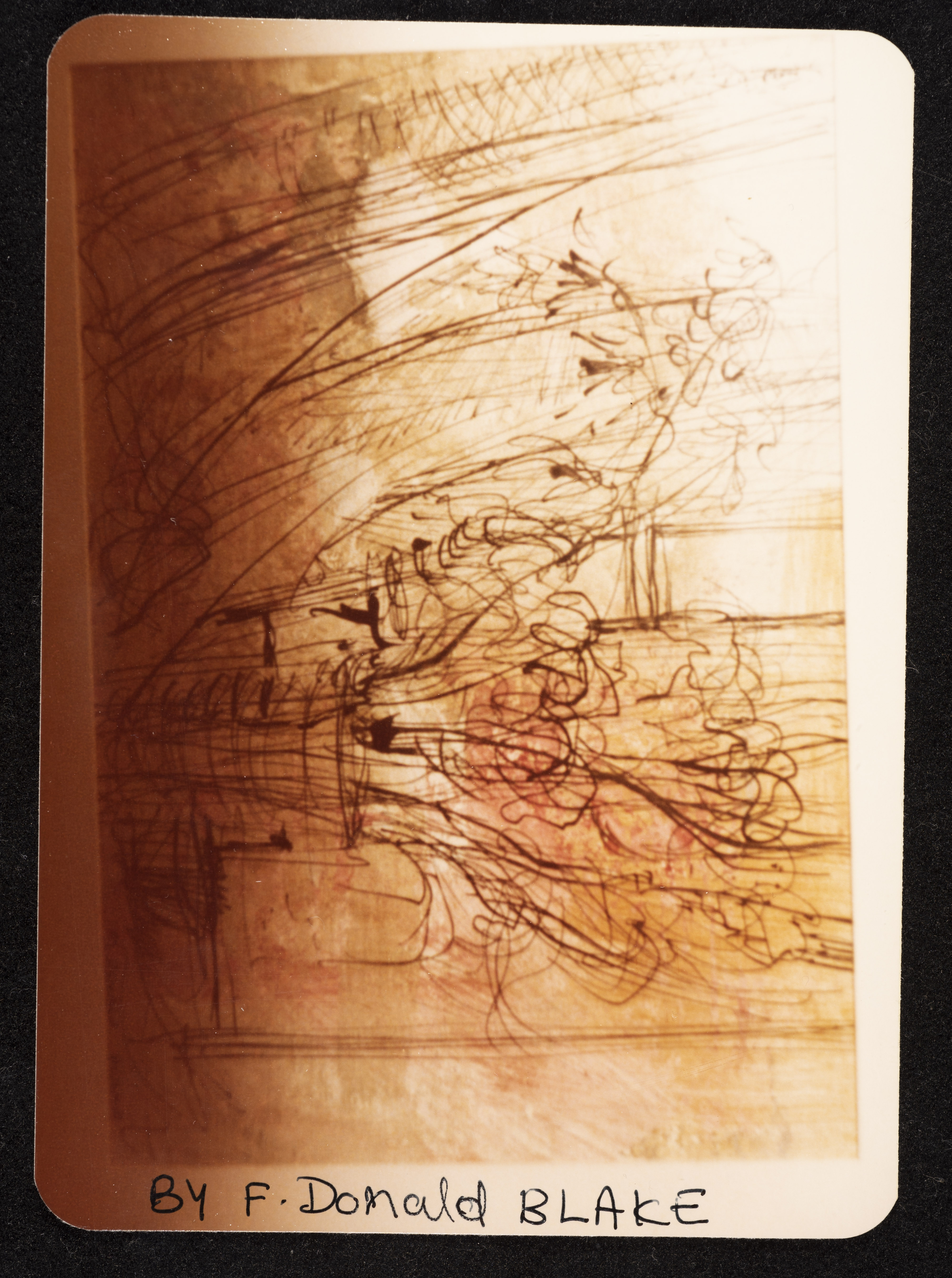 This photograph captures an artwork by Haitian artist St. Louis Blaise. It was taken during his participation in an exhibition held at Nuha Batshon's gallery, "The Gallery", at the InterContinental Hotel in Amman.