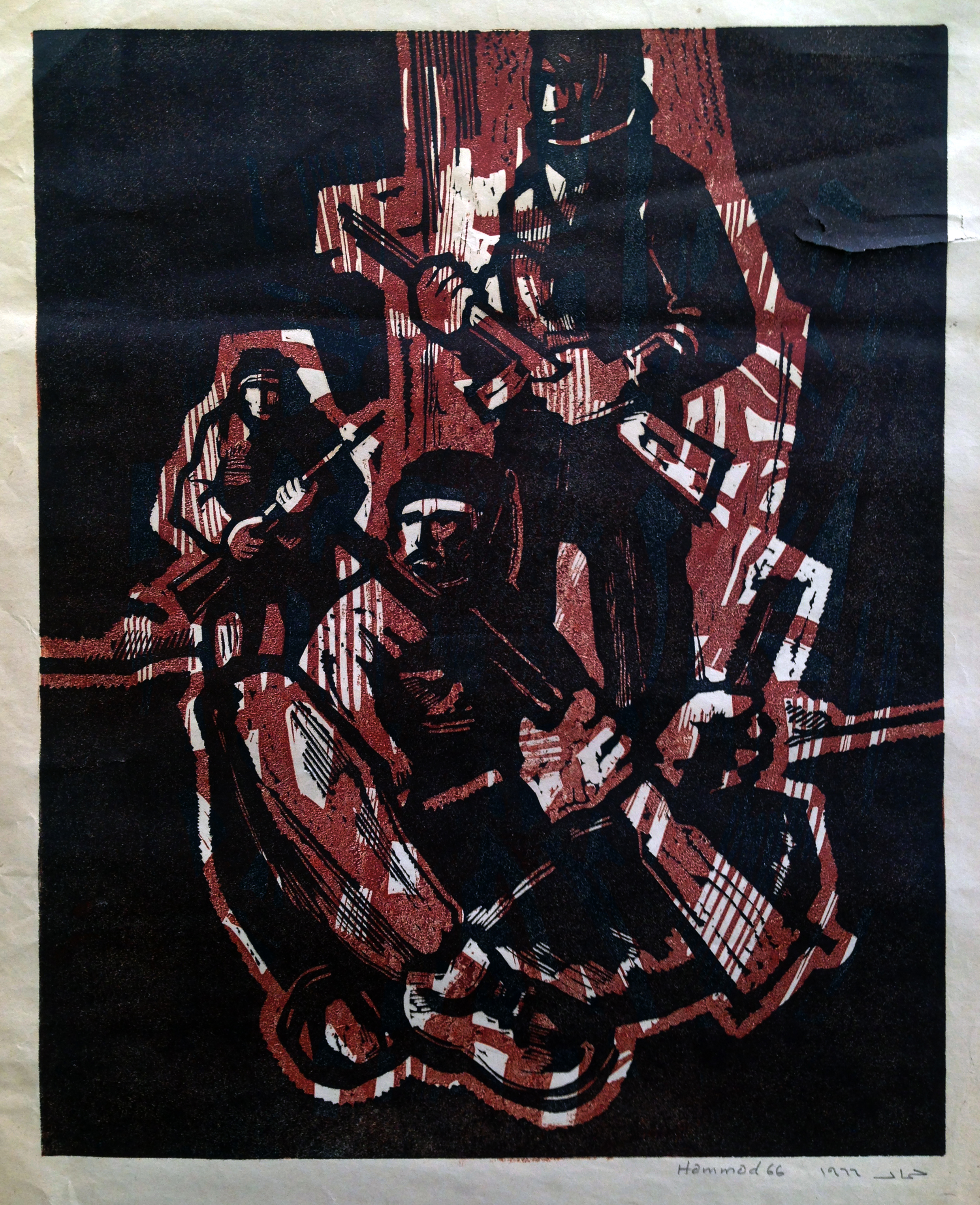 صورة لعمل فني من تصميم الفنان محمود حماد، دمشق، 1966