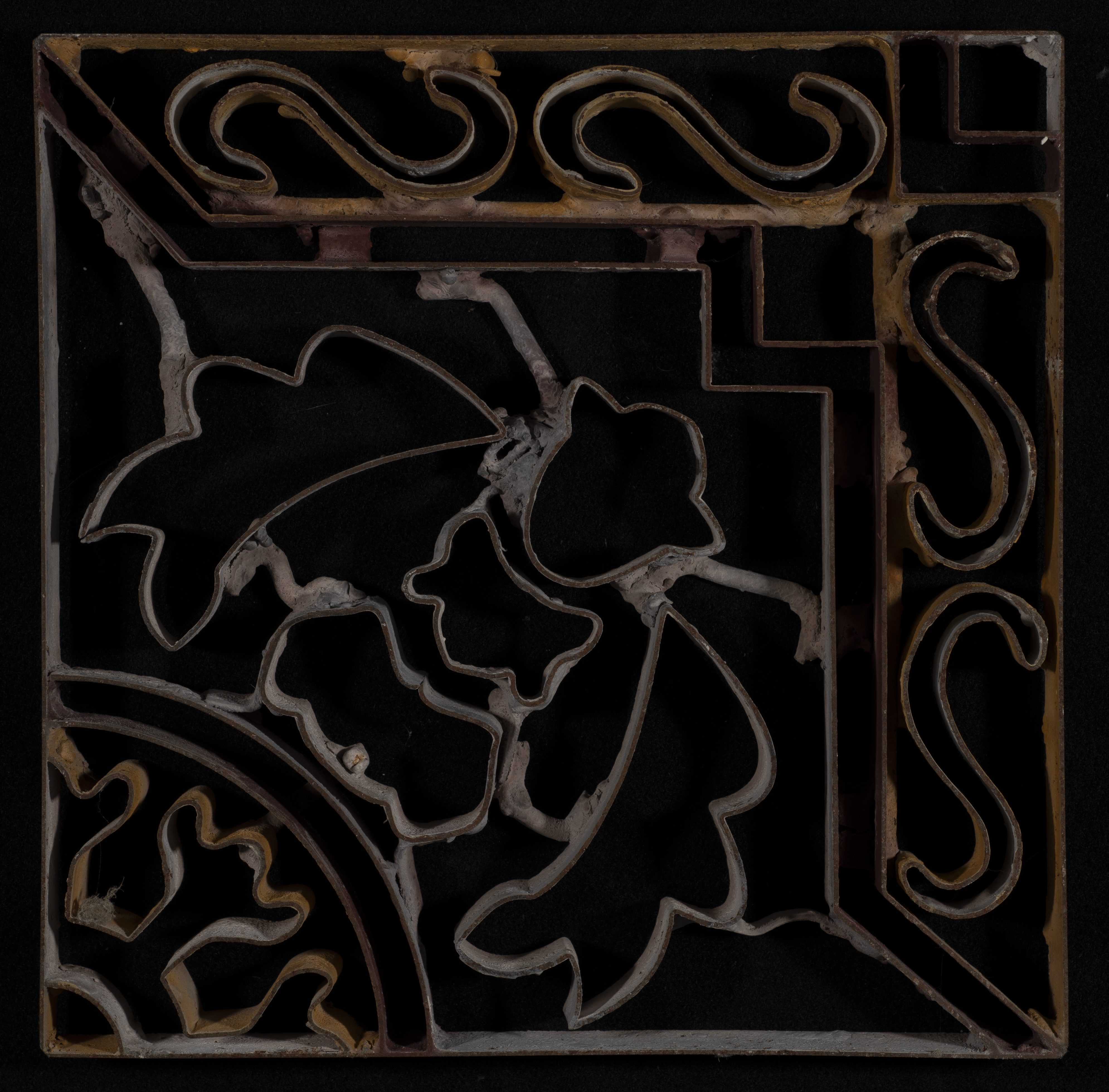 بلاطة إسمنتية ملونة، والقالب النحاسي المستخدم لسكبها، استخدمته عائلة أصلان لسكب البلاط في مصنعها في نابلس.