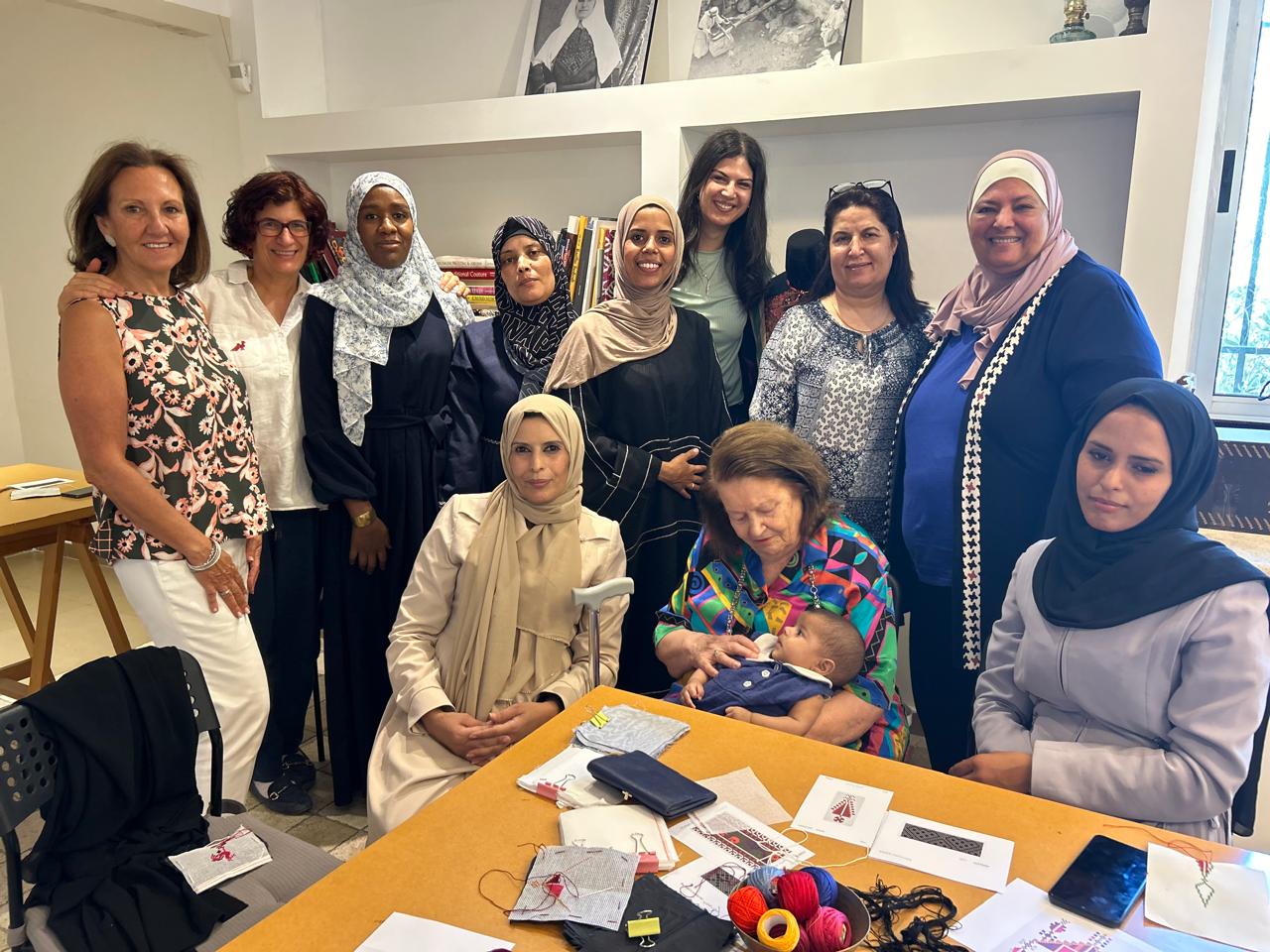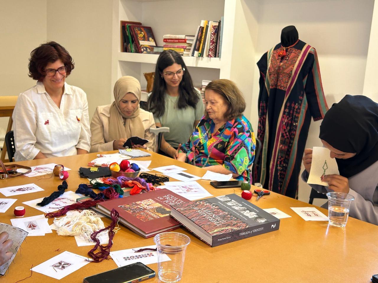 صورة من ورشة عمل عن التطريز، أُقيمت في متحف طراز- بيت وداد قعوار للثوب العربي في عمان.