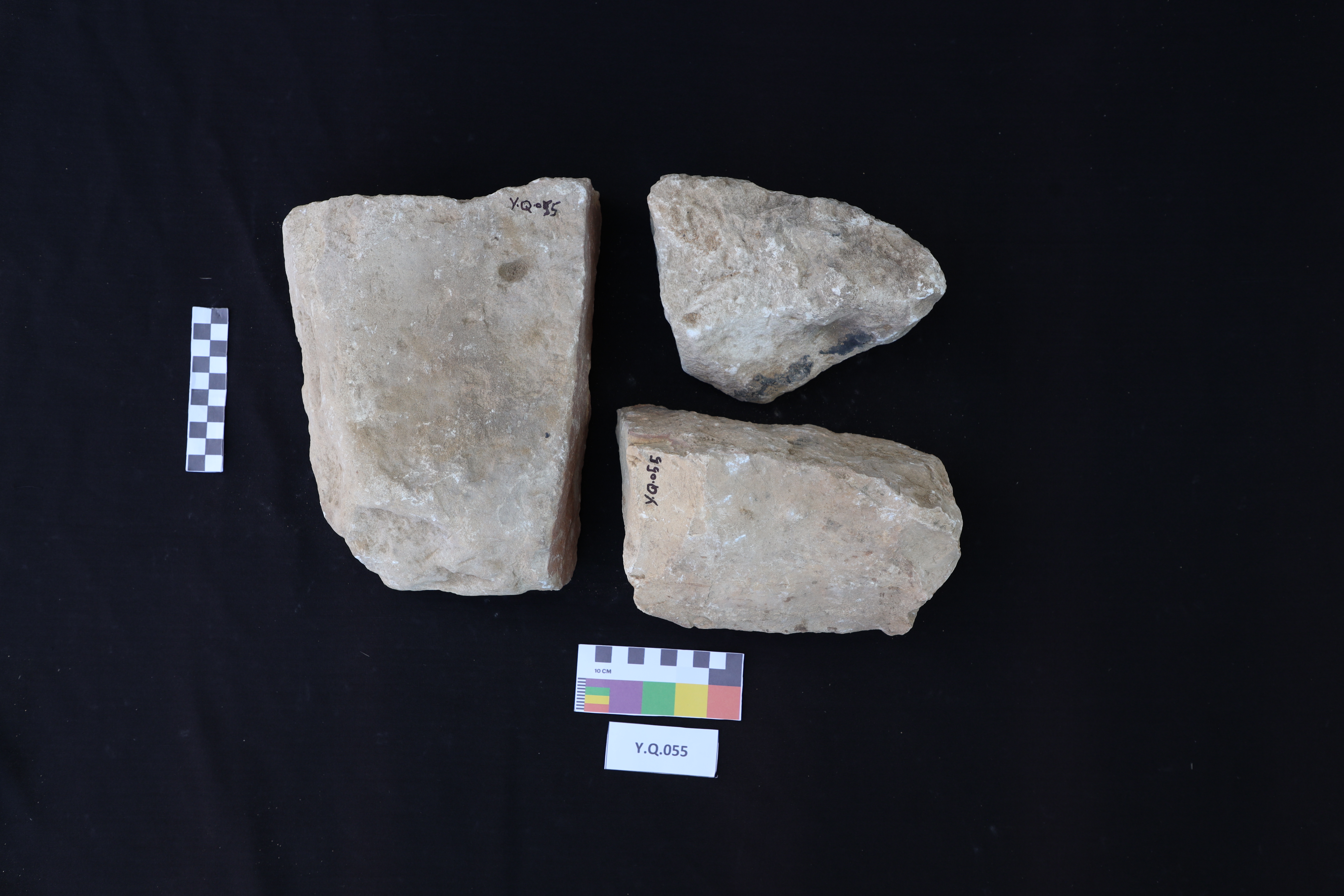 شاهد قبر به كسر قديم ومقسم ثلاثة أجزاء. يعود للفترة البيزنطية ووُجد في خربة الشيخ حمودة.