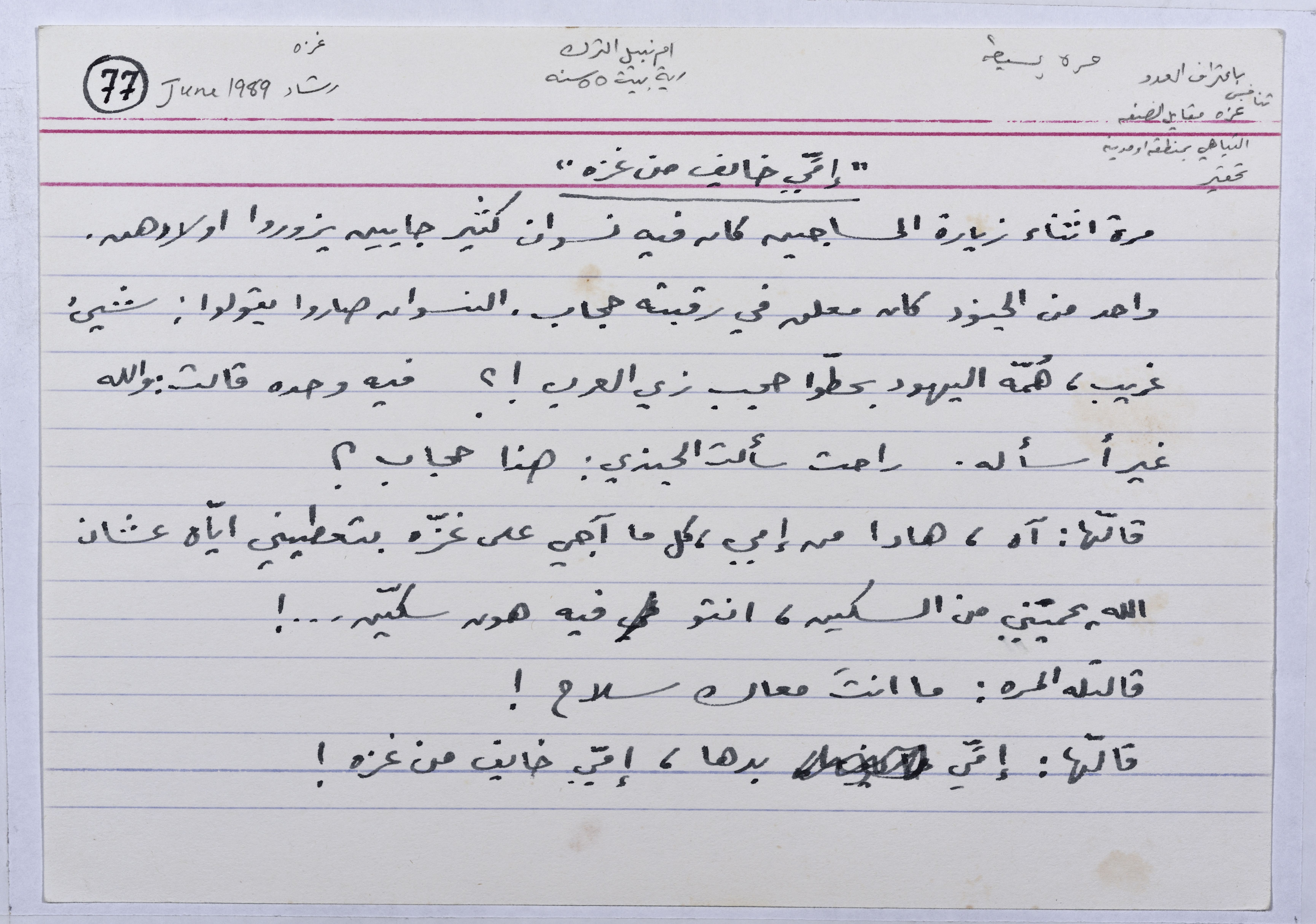 These jokes and stories were collected and recorded by Sharif Kanaana, from the late 1980s until 2005. Each card includes the name of the narrator, the place of residence and the date.