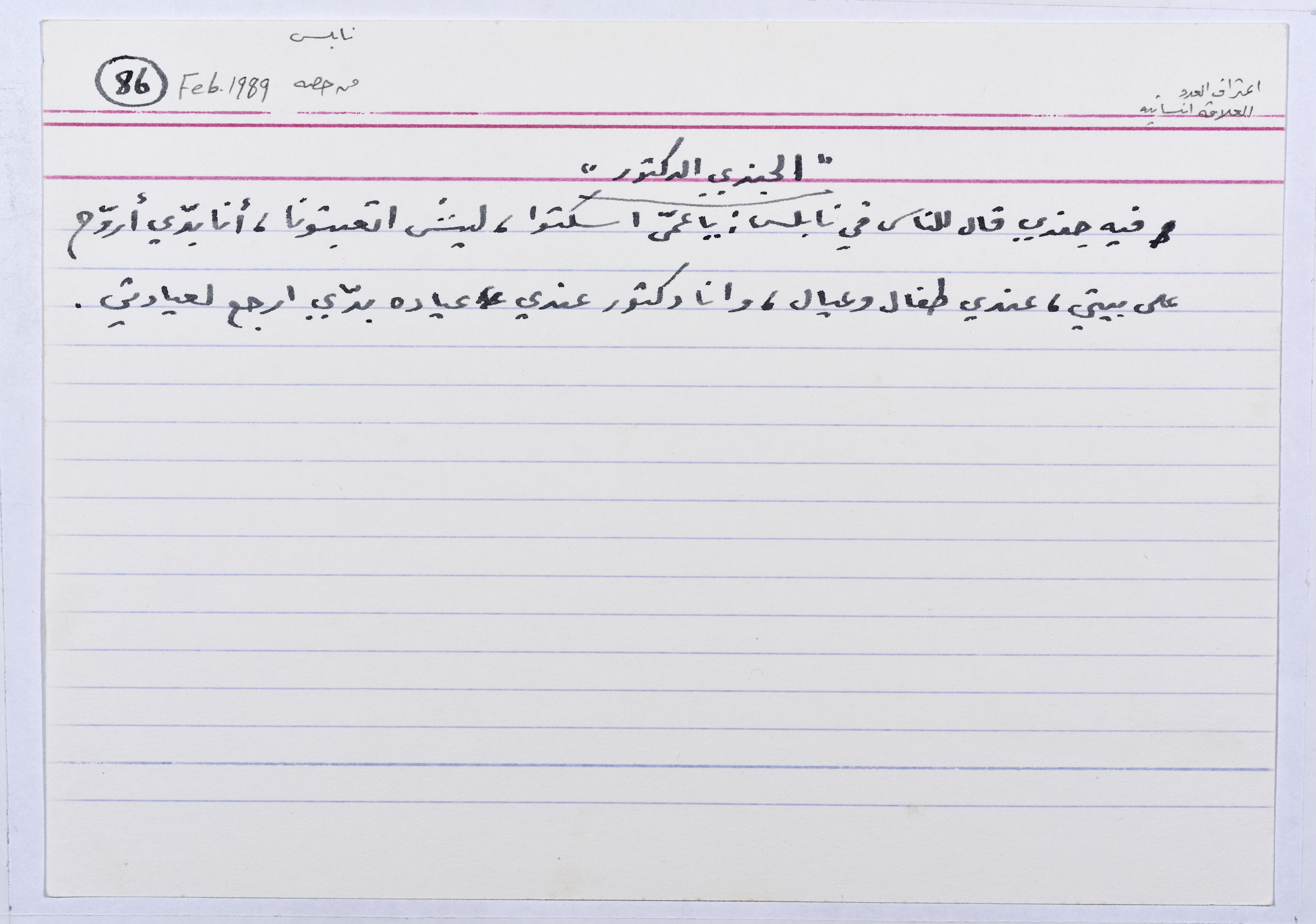 These jokes and stories were collected and recorded by Sharif Kanaana, from the late 1980s until 2005. Each card includes the name of the narrator, the place of residence and the date.