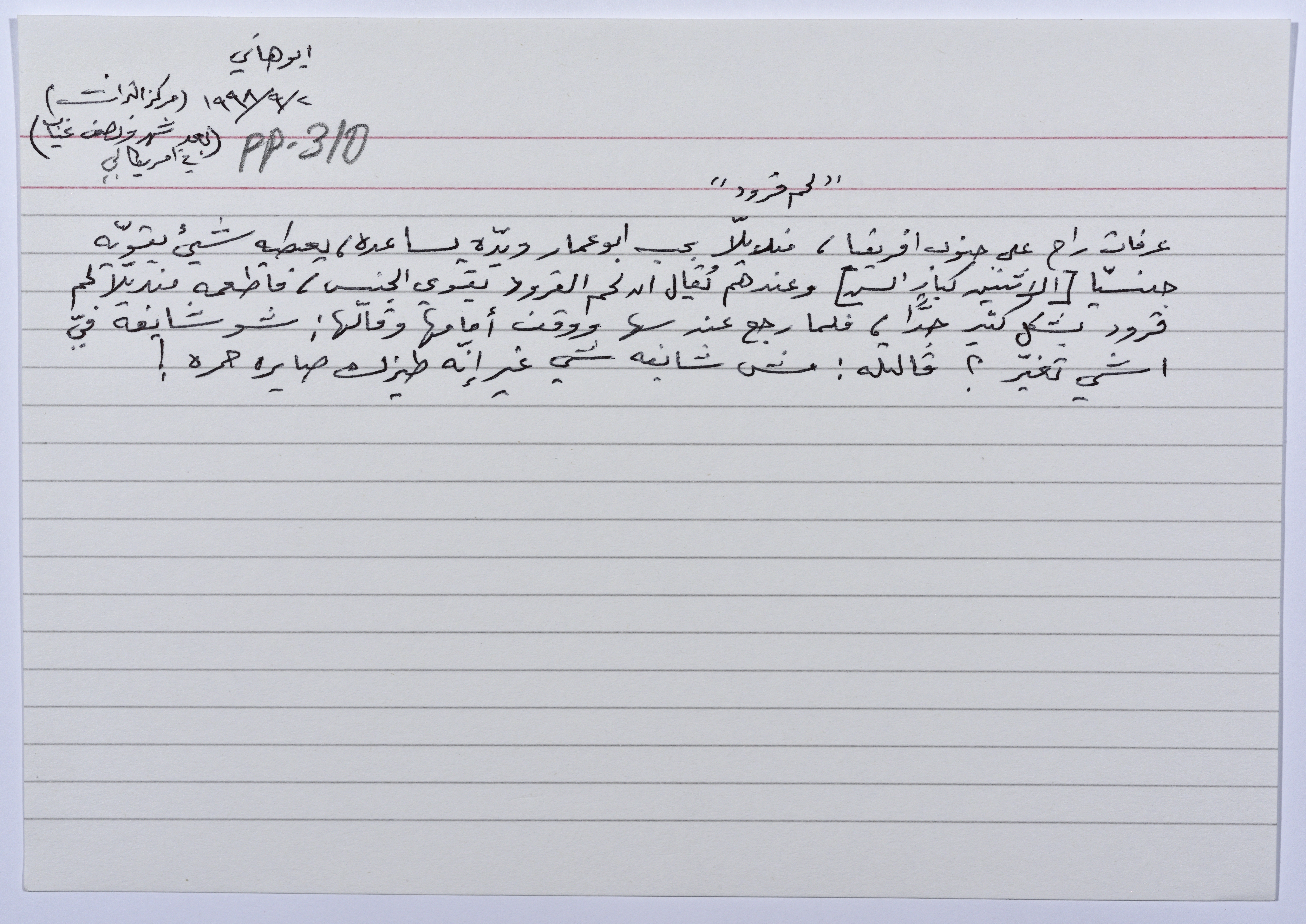 بطاقة وُثِّق عليها نكتة بعنوان "لحم القرود"