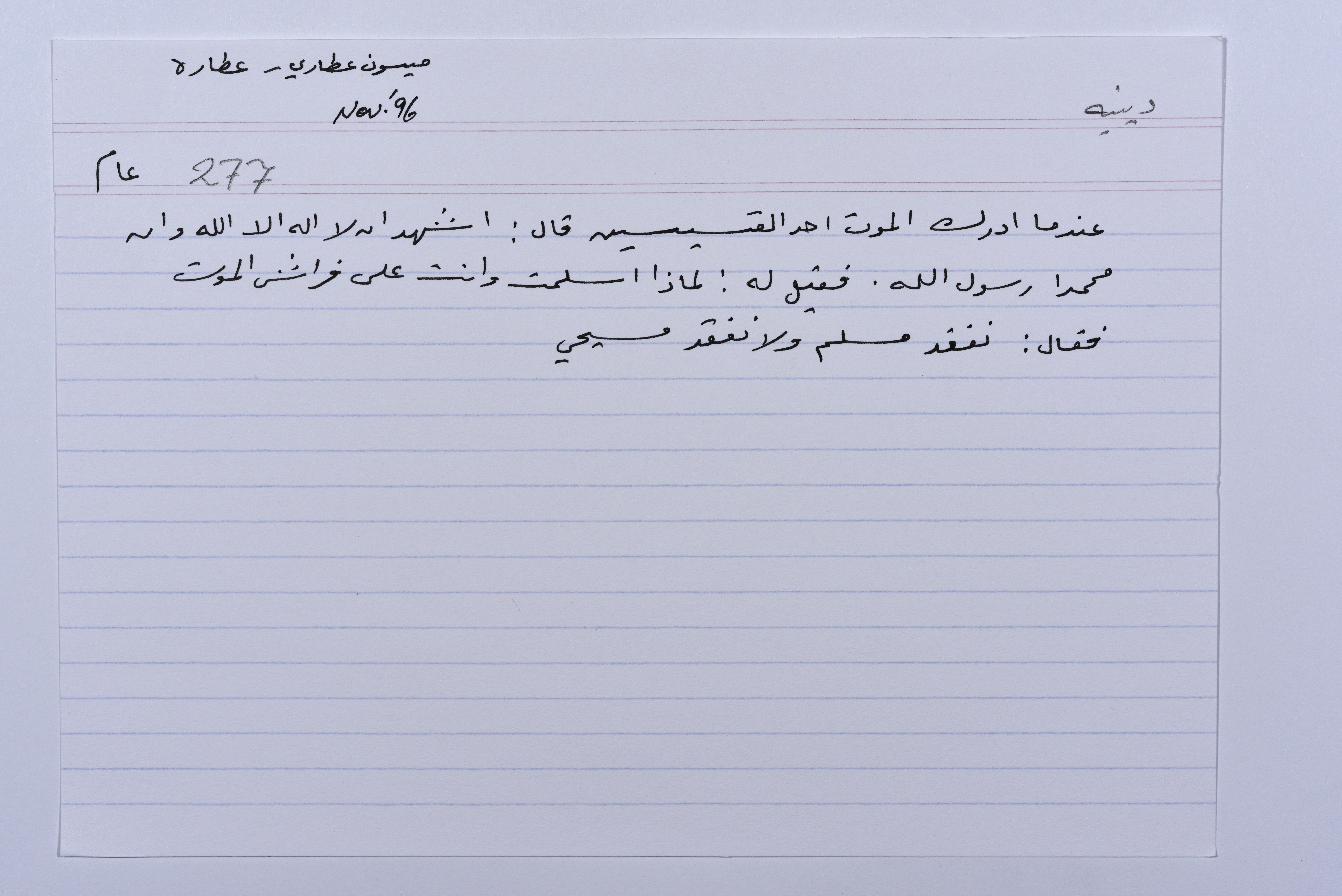 بطاقة وُثِّق عليها نكتة بعنوان "قسيس على فراش الموت"