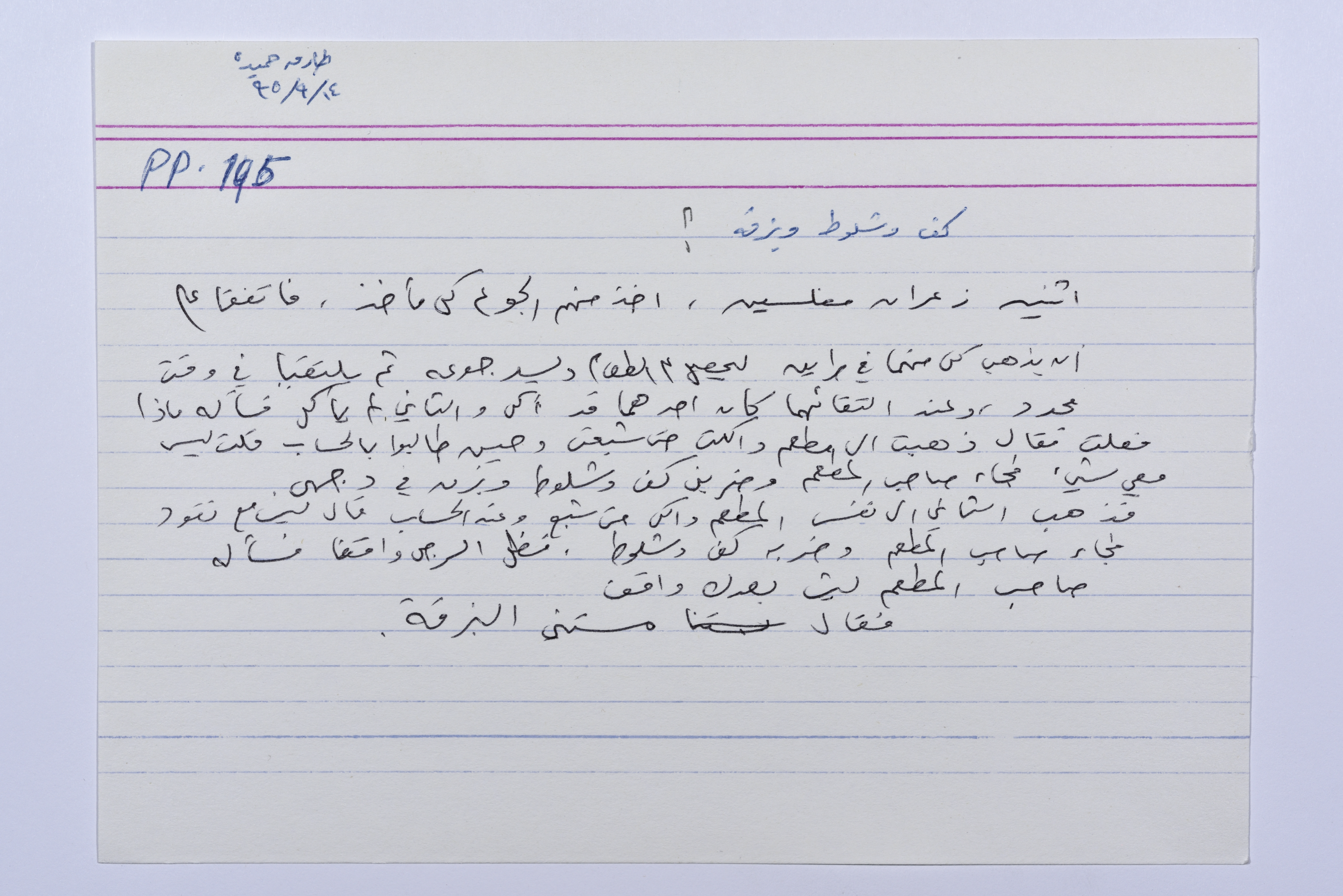 بطاقة وُثِّق عليها نكتة بعنوان "زعران مفلسين"
