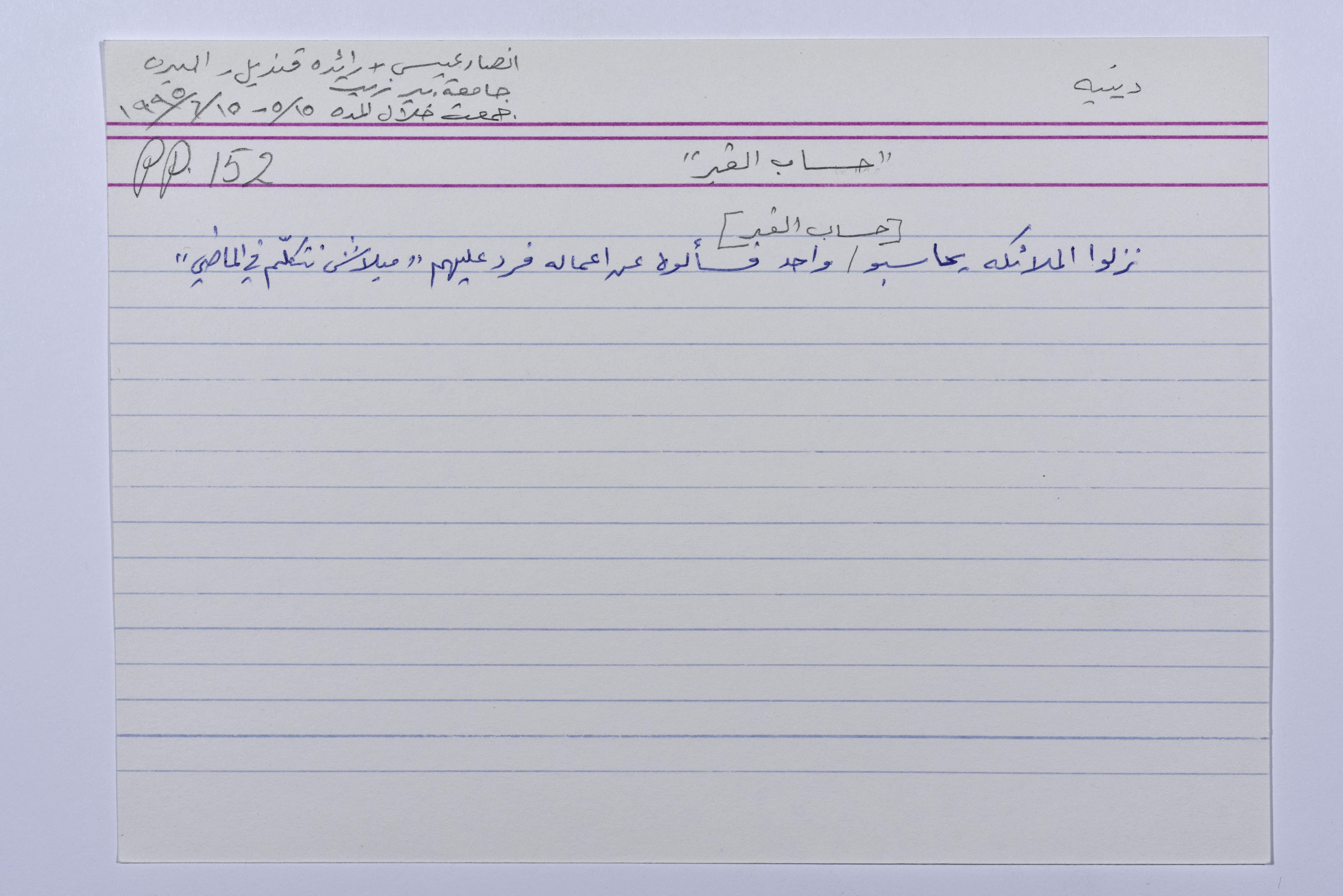 بطاقة وُثِّق عليها نكتة بعنوان "حساب القبر"
