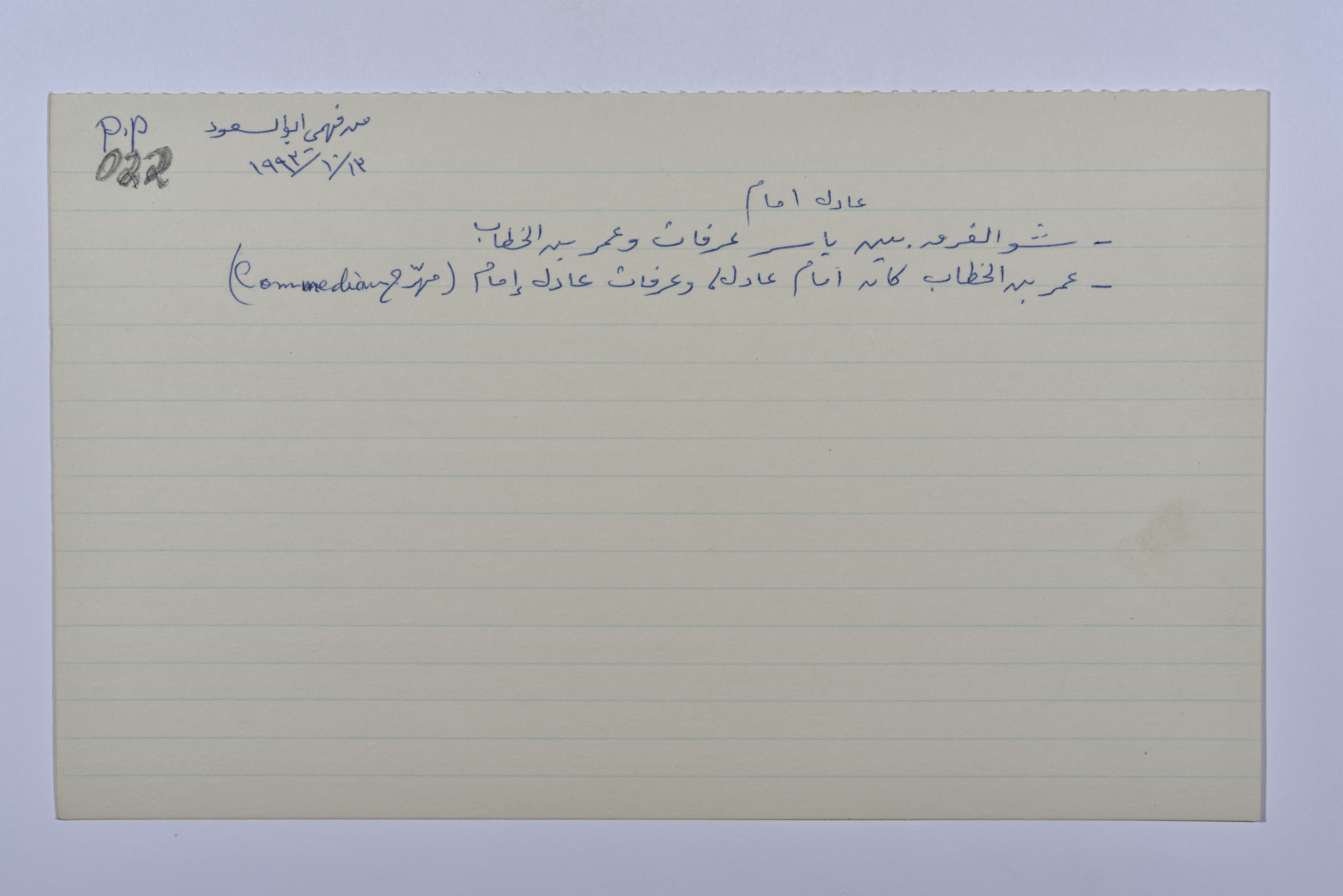 These jokes and stories were collected and recorded by Sharif Kanaana, from the late 1980s until 2005. Each card includes the name of the narrator, the place of residence and the date.