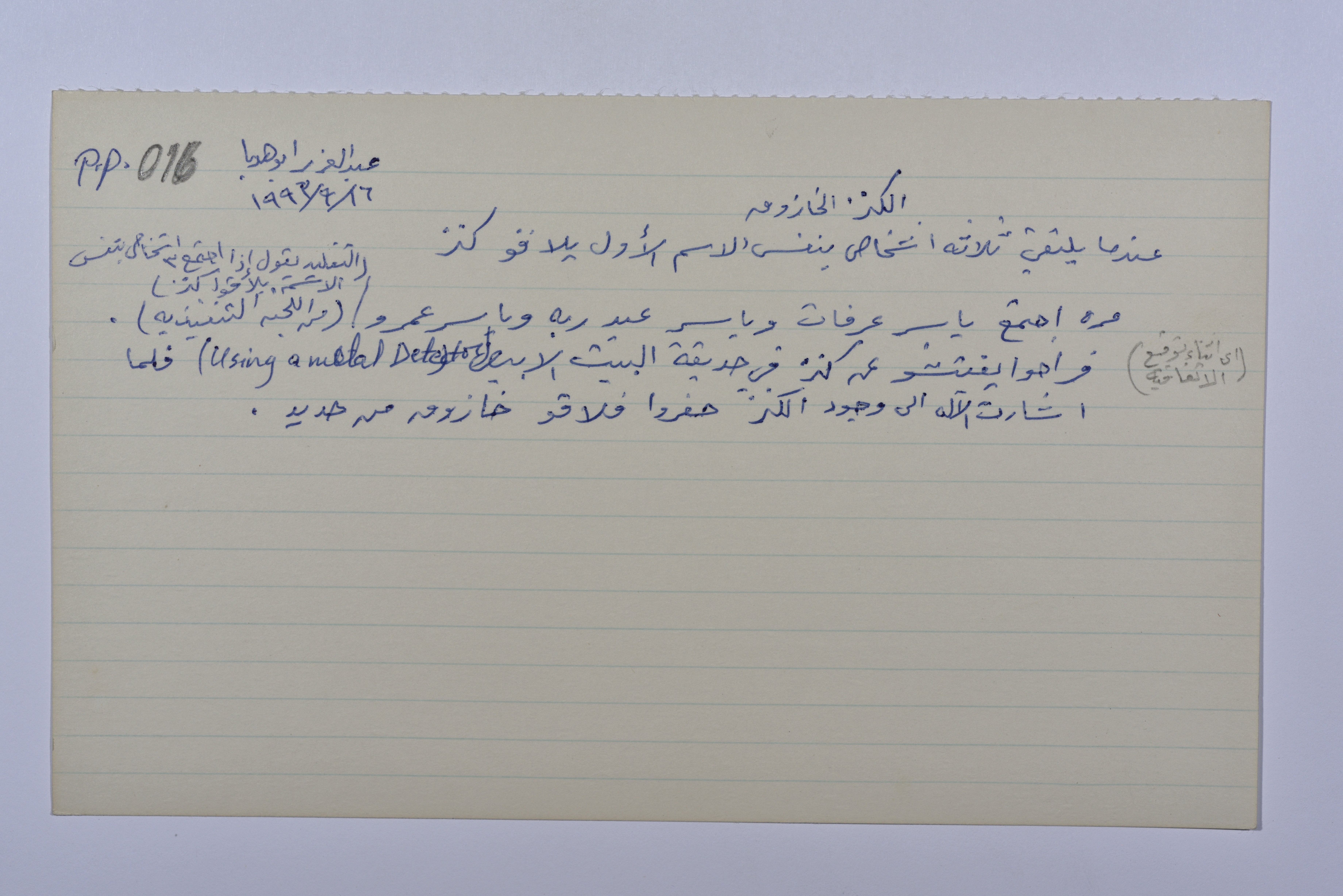 بطاقة وُثِّق عليها نكتة بعنوان "الكنز الخازوق"