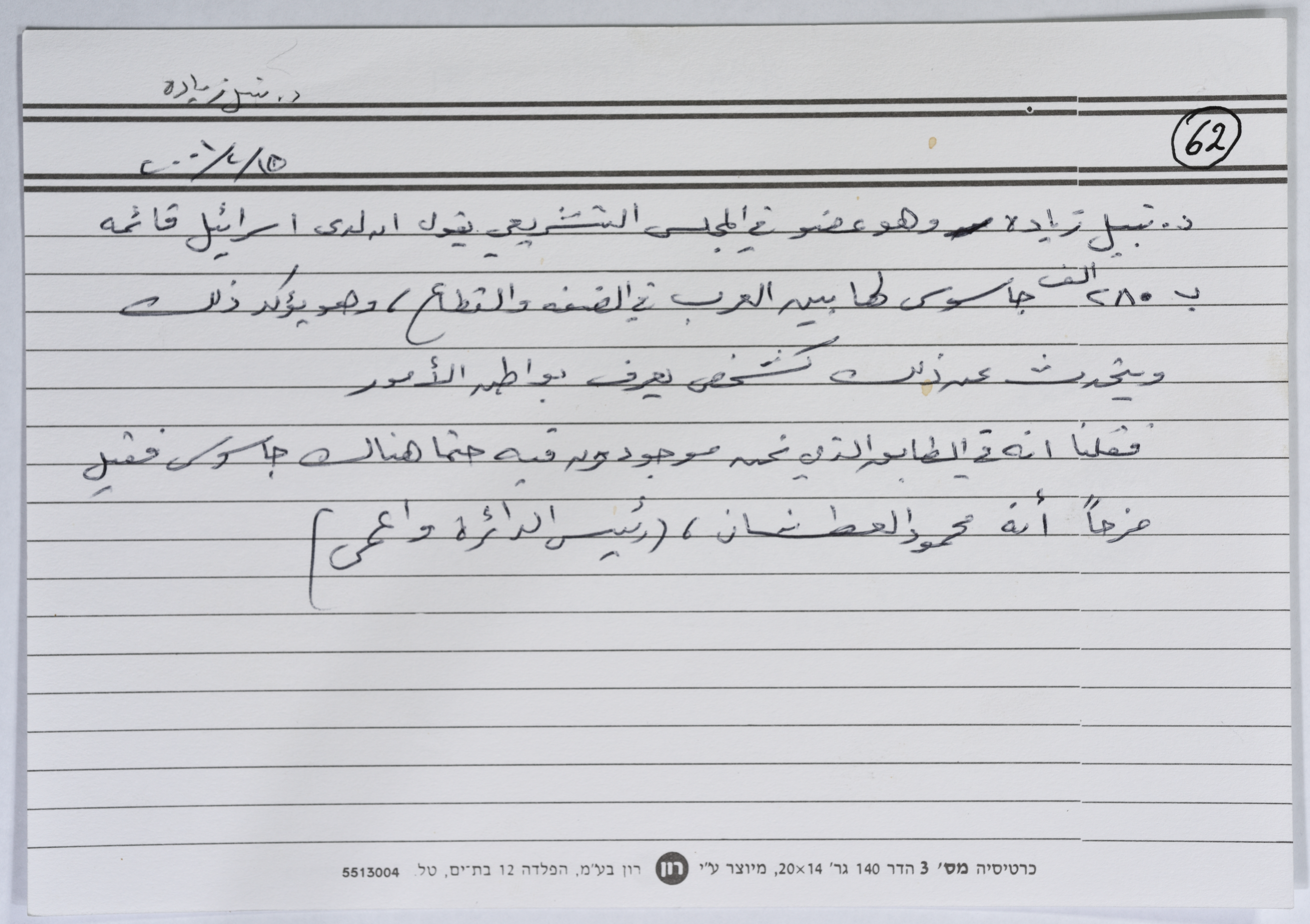 جُمعت هذه النكت من قِبل شريف كناعنة، بدأ بجمعها من أواخر الثمانينيات حتى منتصف العقد الأول من القرن الواحد العشرين. تتضمن البطاقة اسم راوي النكتة ومكان سكنه والتاريخ.