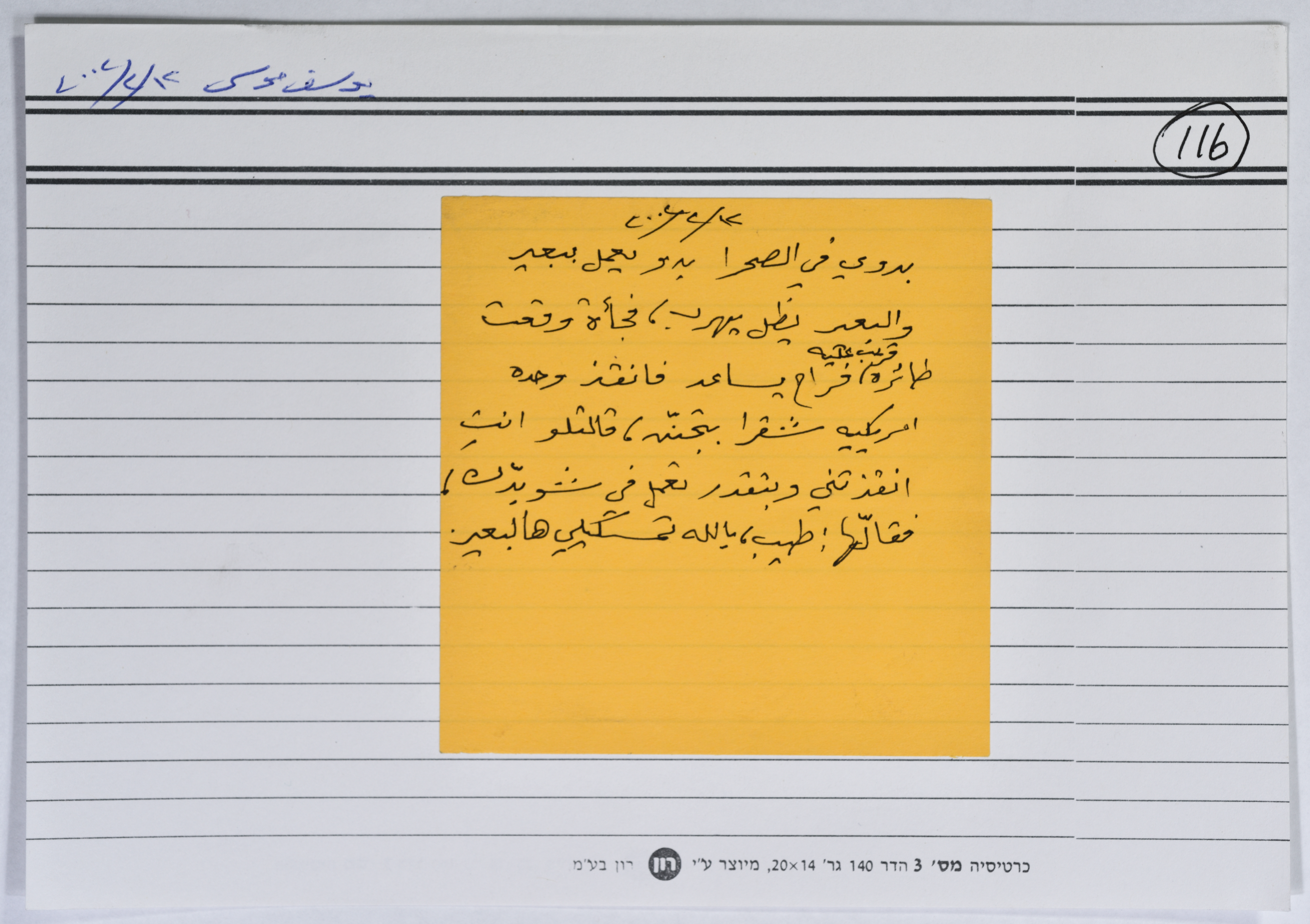A card documenting a joke entitled "The Bedouin and the Foreign Woman"