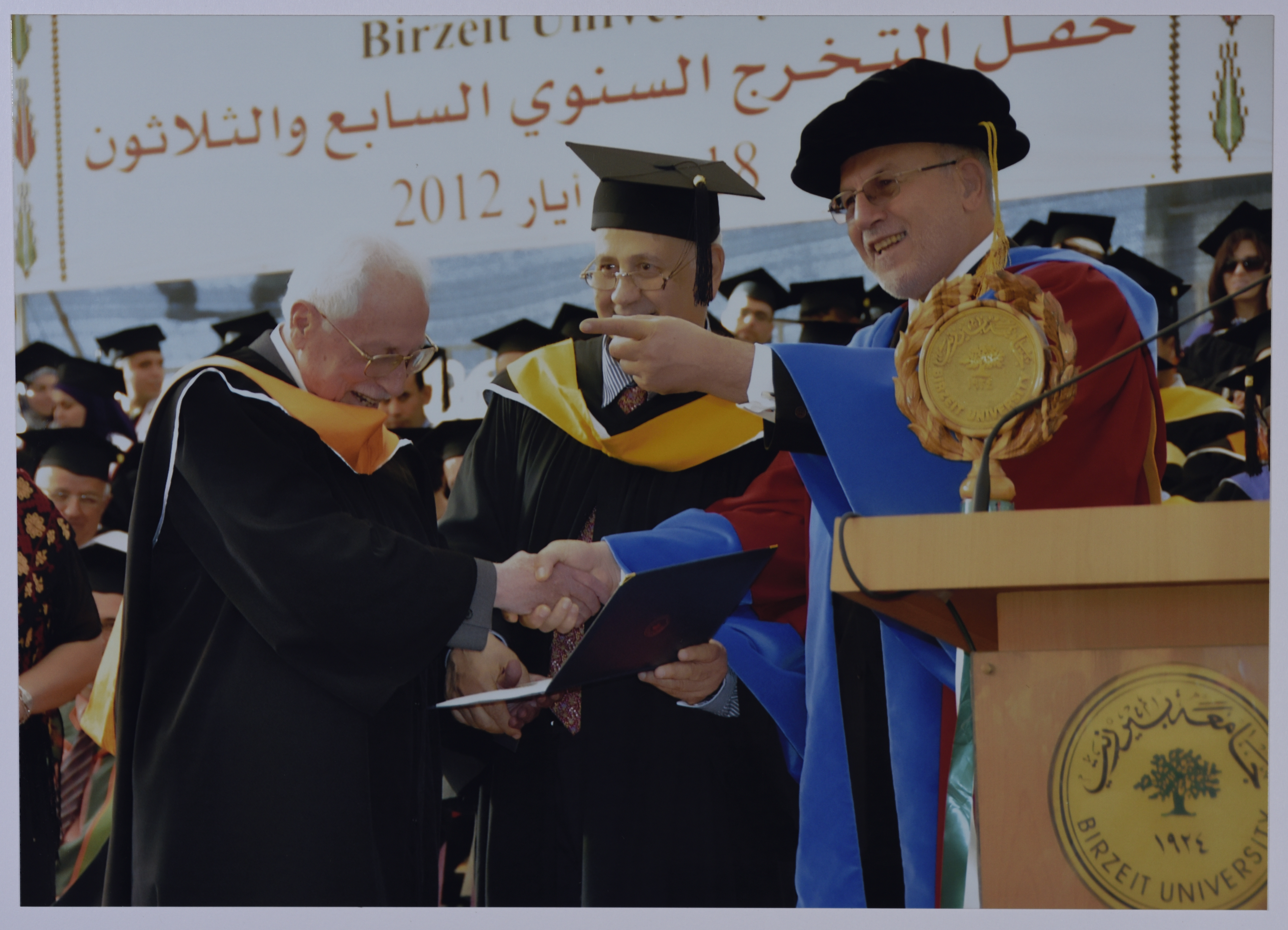 صورمنح السيد ابراهيم الدقاق منصب الدكتوراة الفخرية في التنمية المجتمعية من جامعة بيرزيت خلال حفل التخرج السنوي السابع والثلاثين