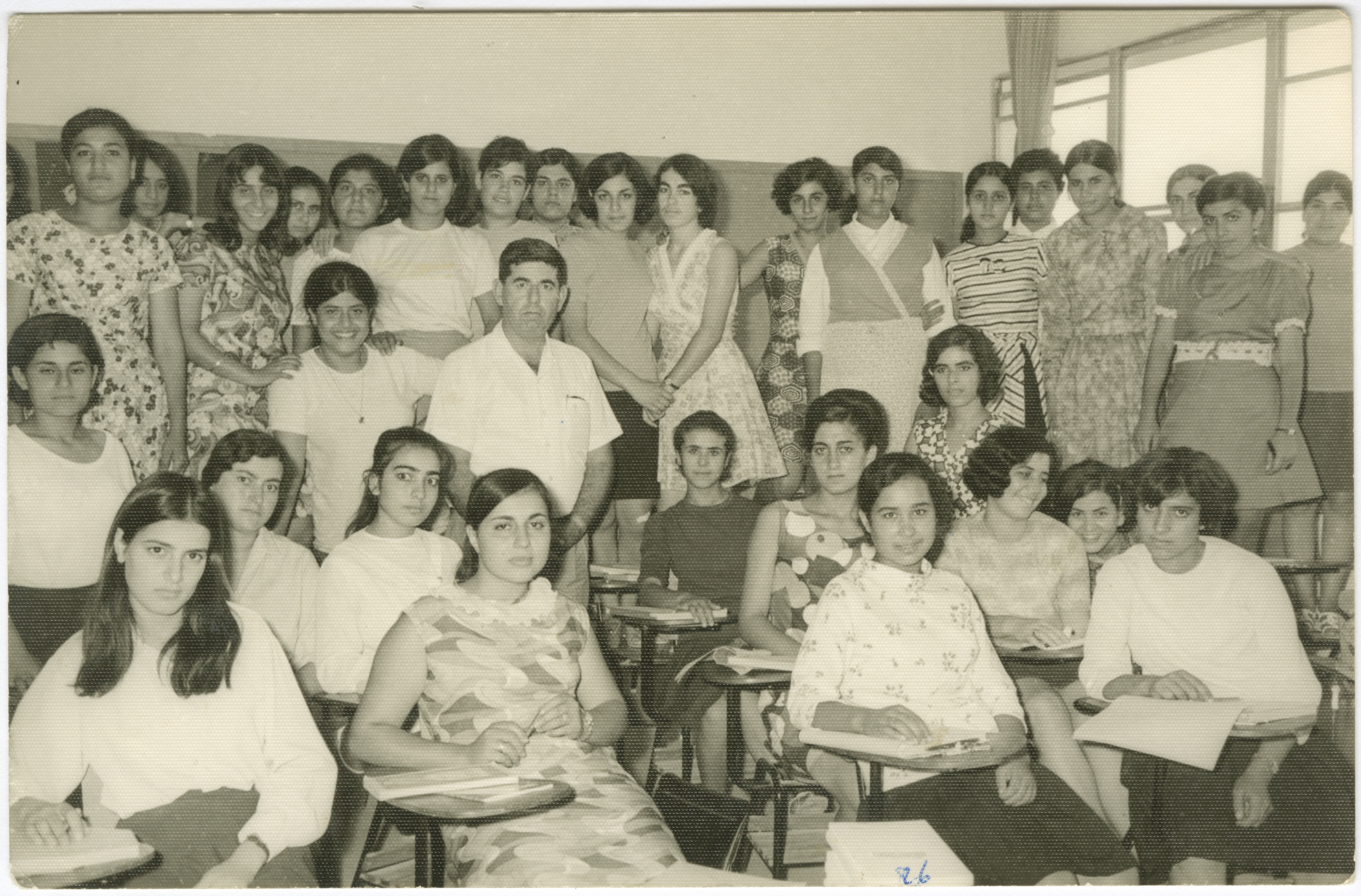 A group of female students with Mr. Elias Saba at the Teachers' College in Haifa.
