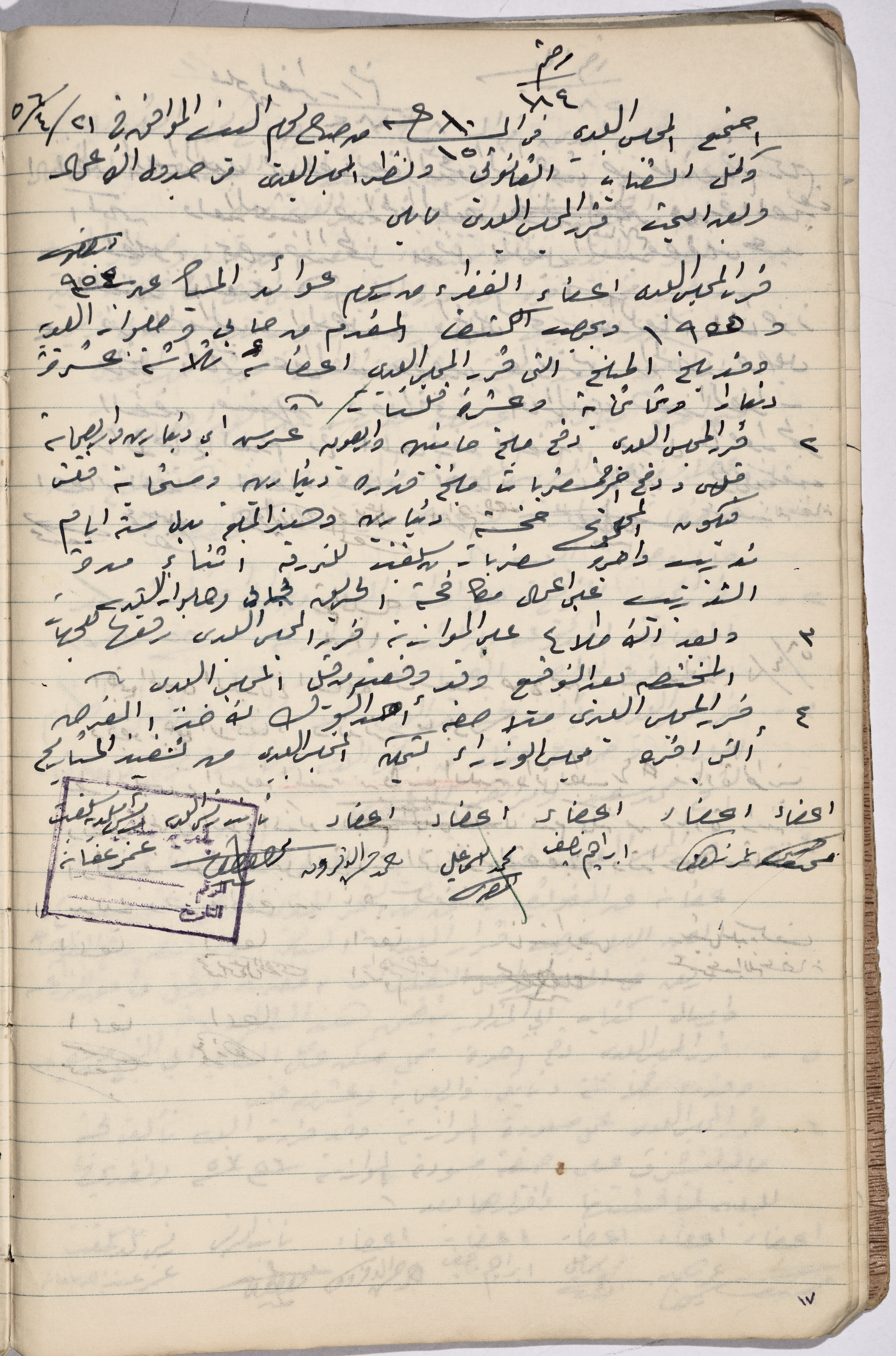 Minutes of the 184th session of the Salfit Municipal Council during which the Council decided to exempt the poor from the 1954-1955 water fees and allocate the budget made by the financial committee to concerned authorities for approval. At the end of the session, the Council decided to submit an application to a bank to obtain a loan in order to establish new projects in the town, after a decision was issued by the Jordanian Council of Ministers allowing this.