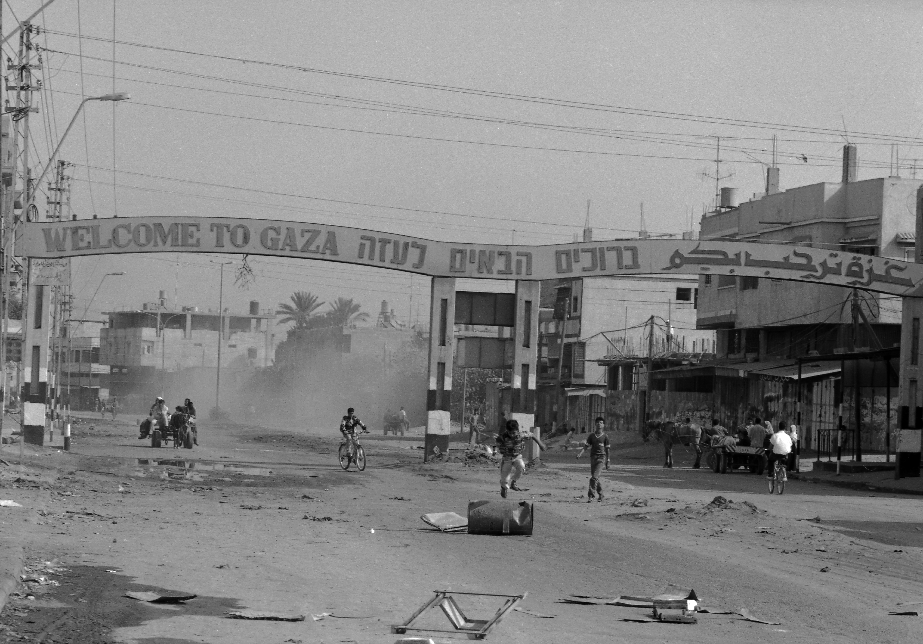 .صورة غير ملونة للمدخل الرئيسي لمدينة غزة فترة الإضراب العام