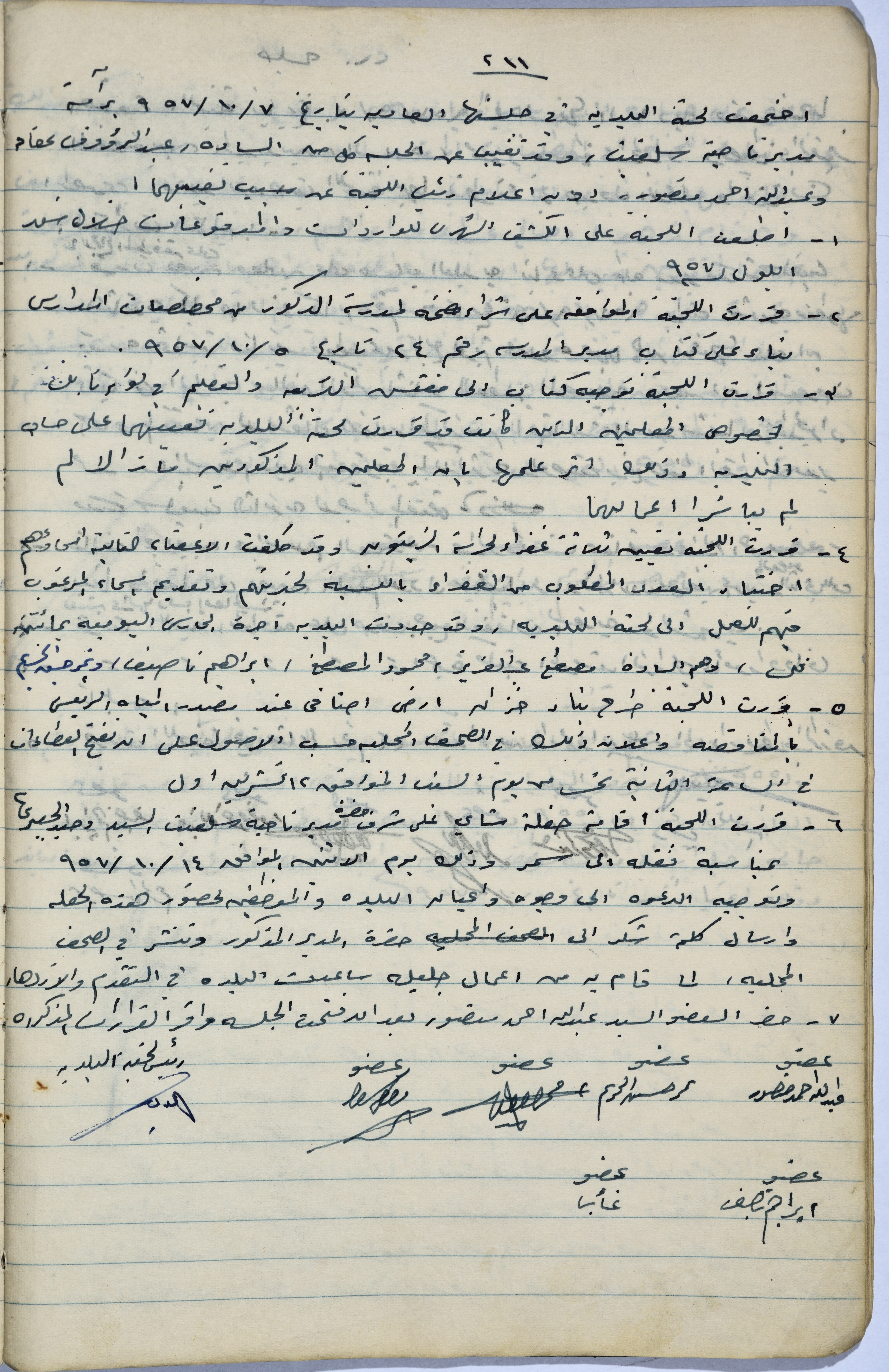 محضر جلسة مجلس بلدي سلفيت رقم 211، 7 تشرين الأول 1957