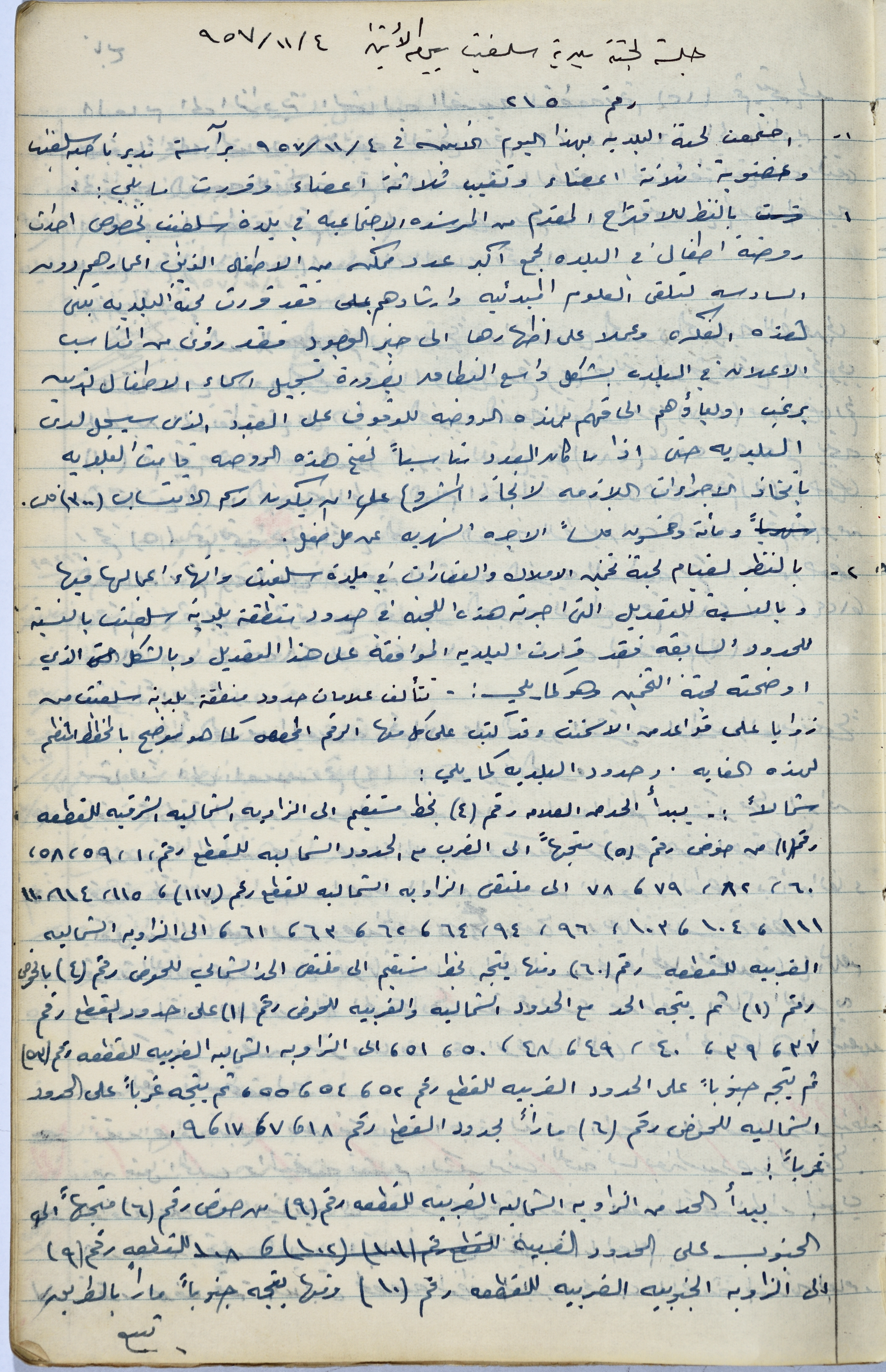 محضر جلسة مجلس بلدي سلفيت رقم 215، 4 تشرين الثاني 1957