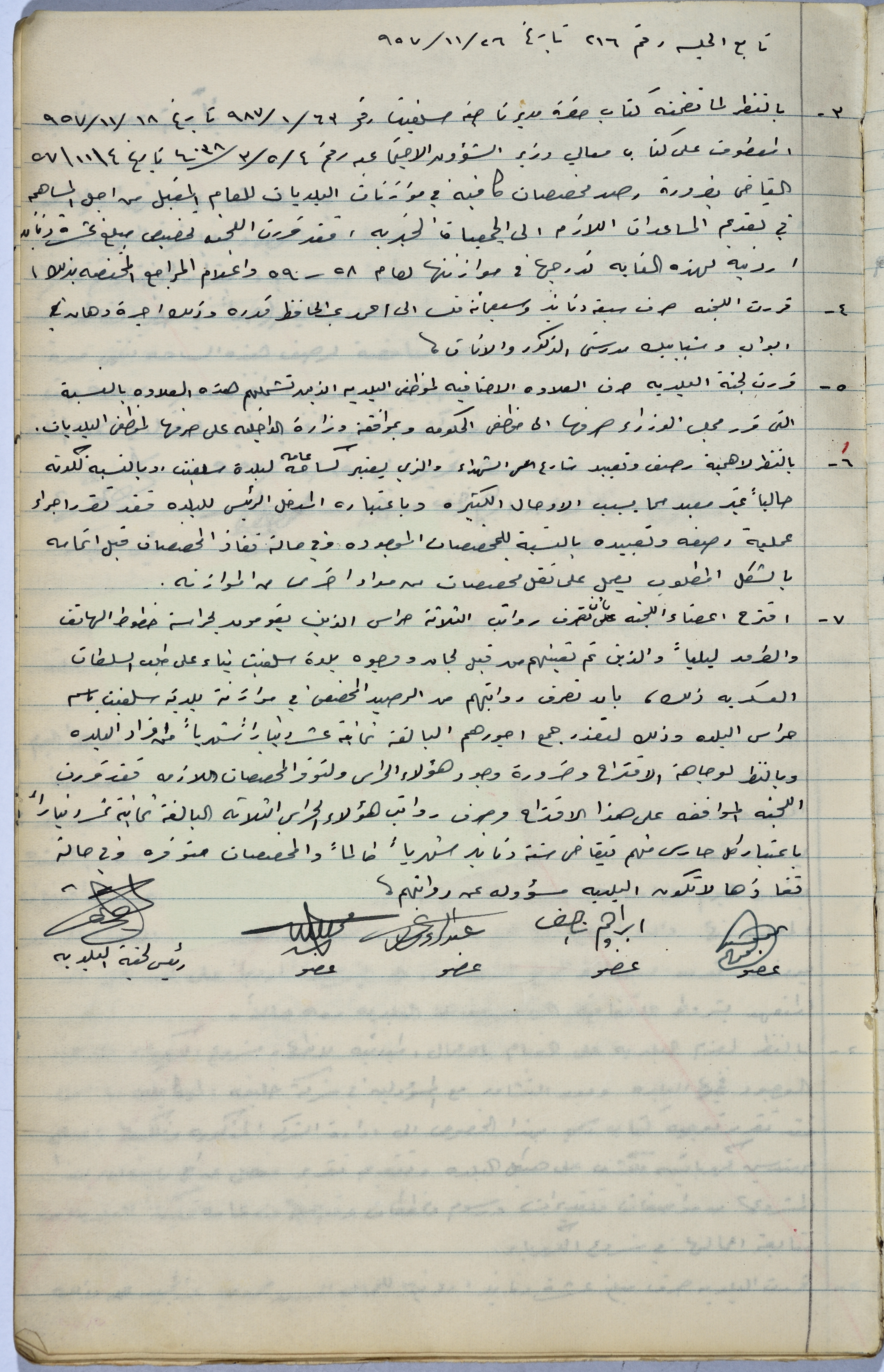 Salfit Municipal Council, Minutes of Meeting no. 216, 26 October 1957