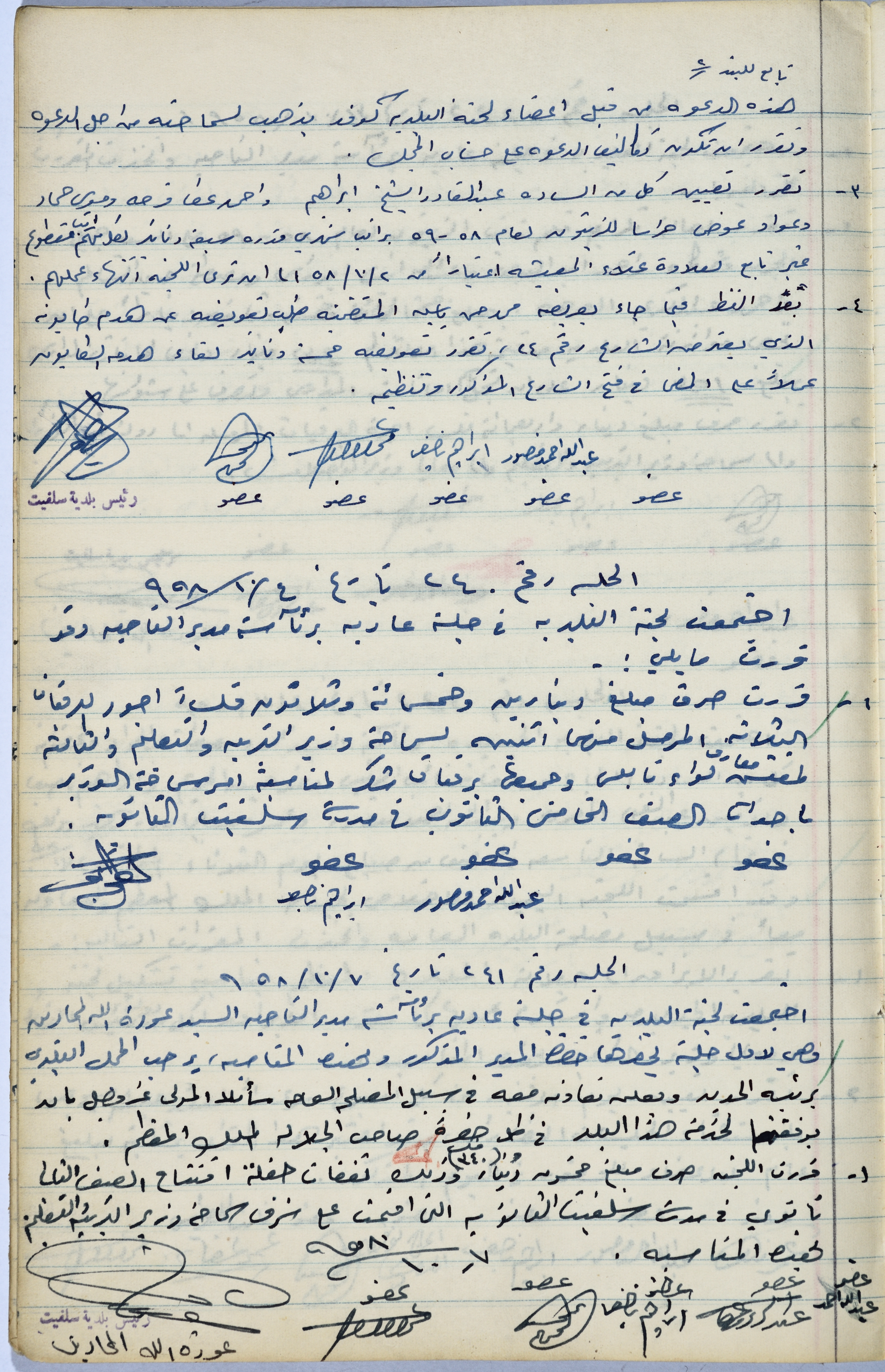 محاضر جلسات مجلس بلدي سلفيت رقم 238-241، 1958