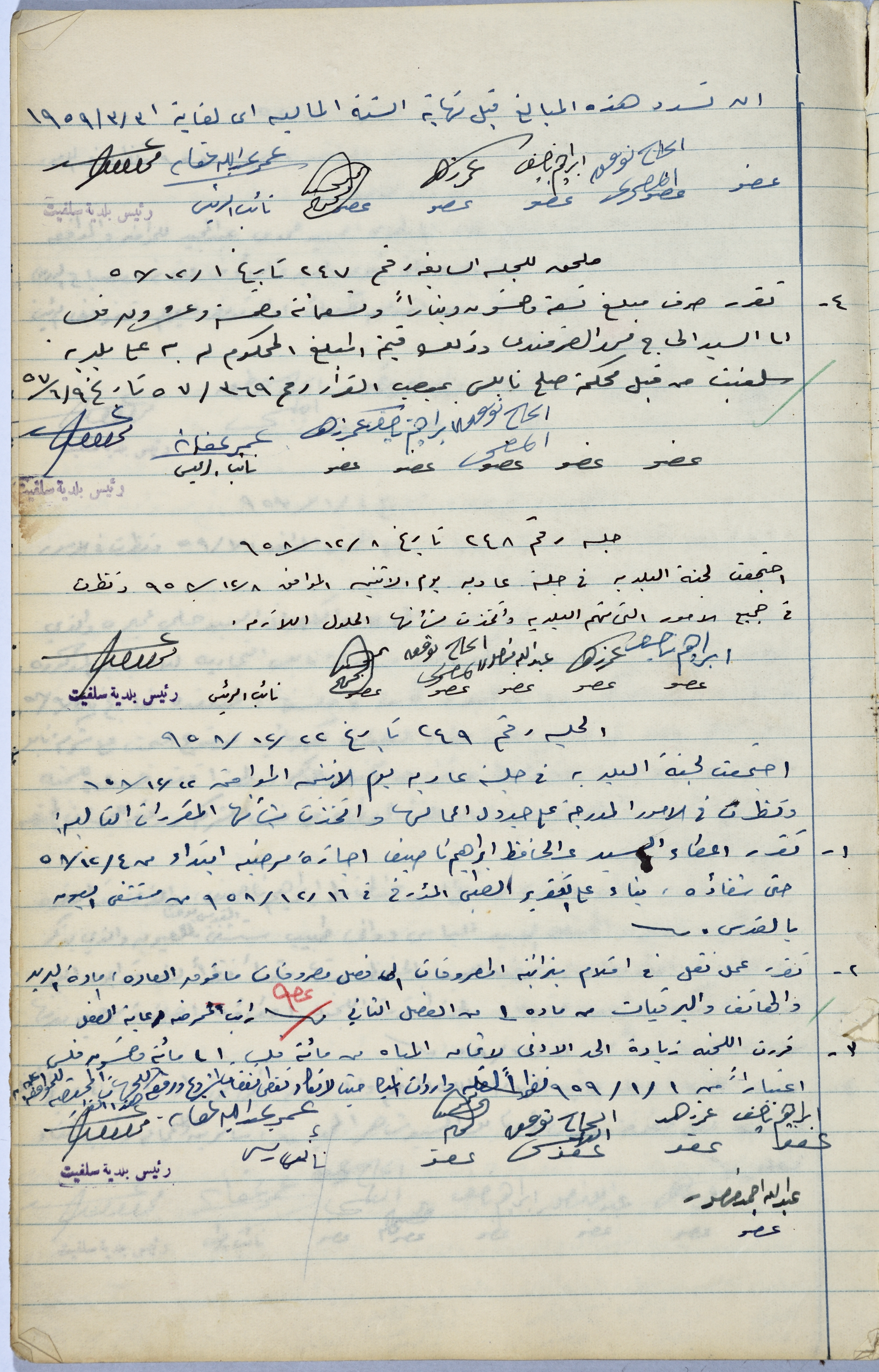 The Minutes of Sessions No. 244- 249 of the Salfit Municipal Council, 1958