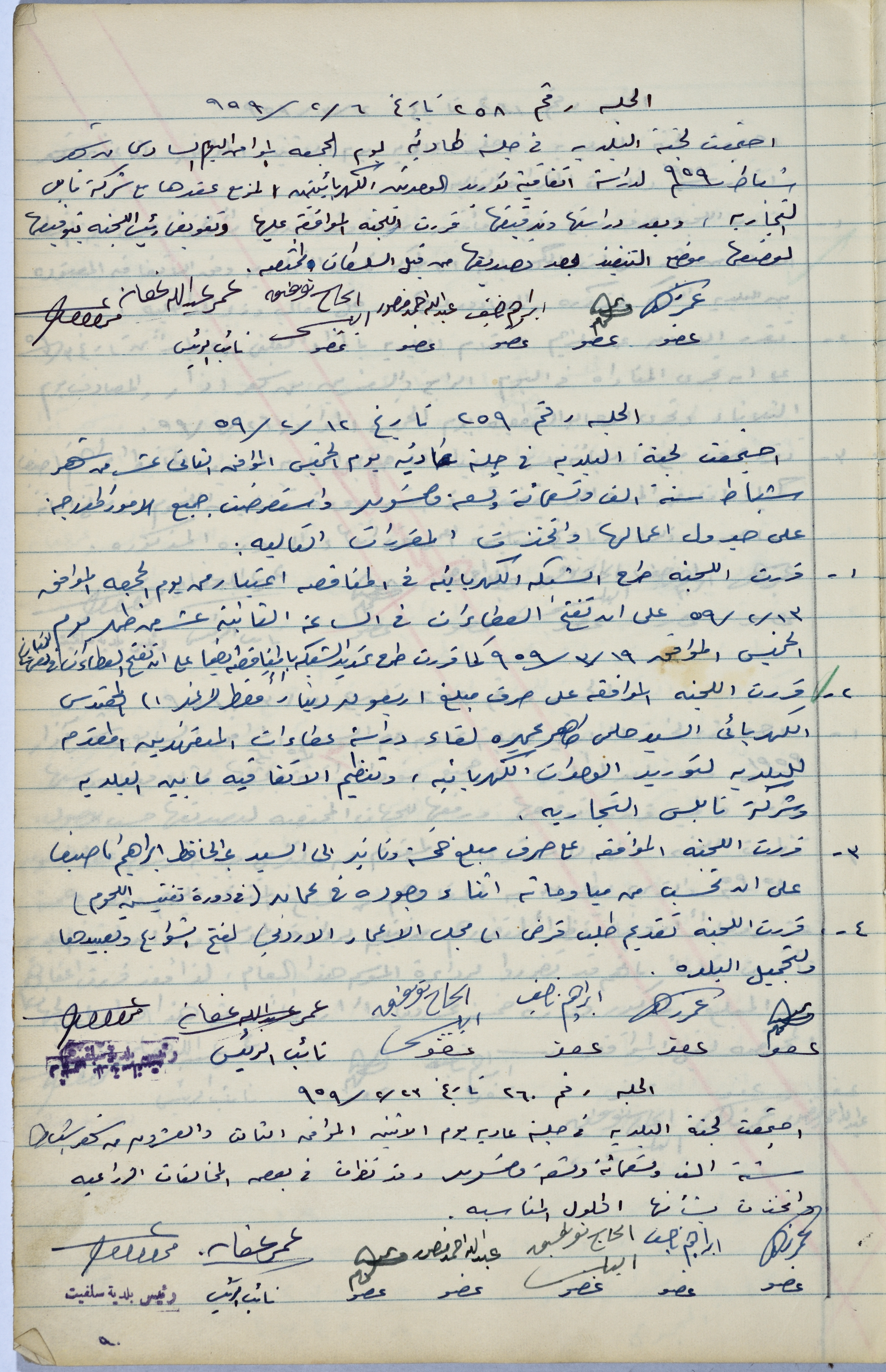 The Minutes of Sessions No. 258- 260 of the Salfit Municipal Council, February 1959