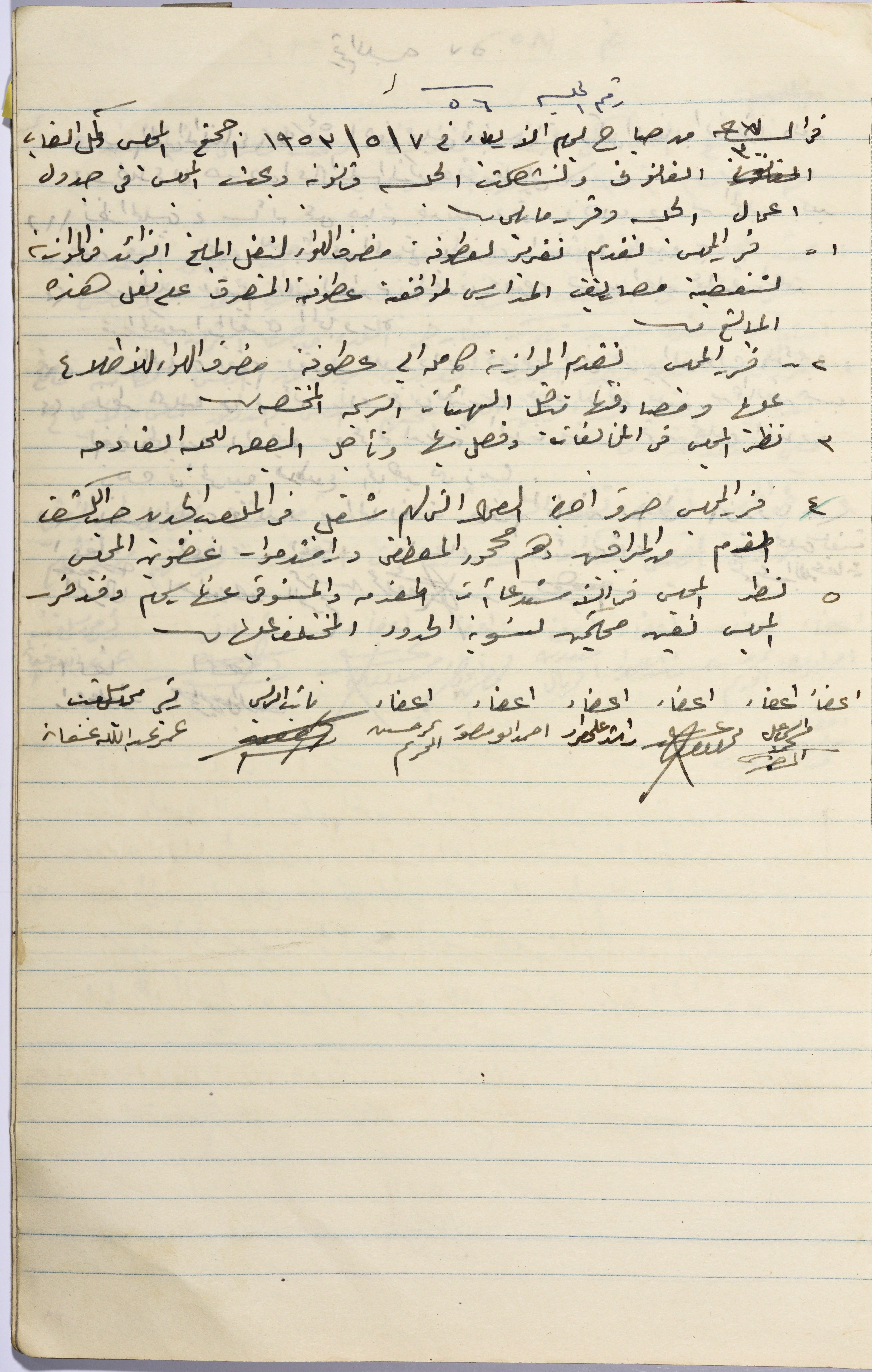 محضر جلسة مجلس قروي سلفيت رقم 56، 7 أيار 1953