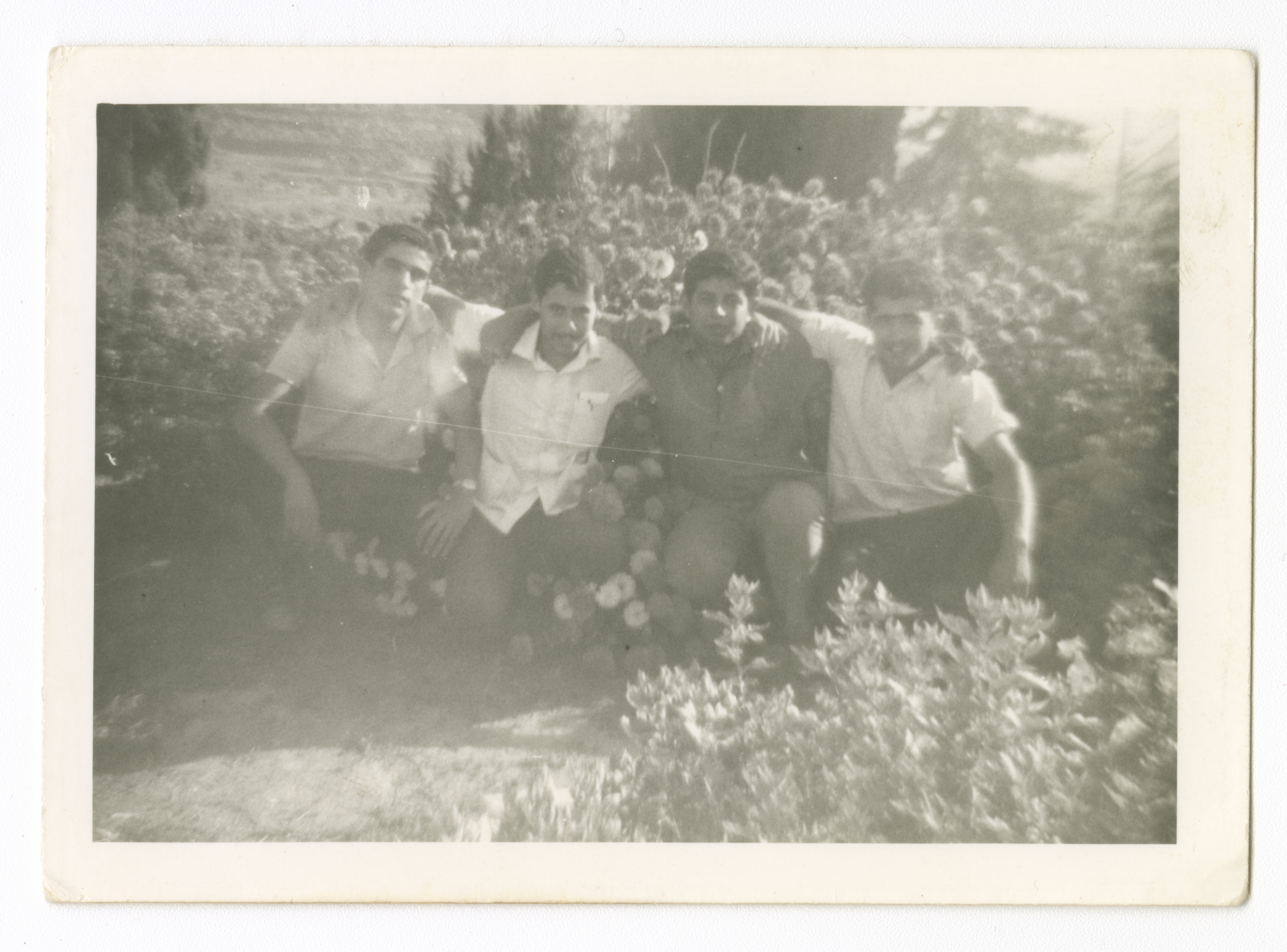 Qasim Qusqus, Musa Sadeq, and Najeh Ragheb in front of a school in Sebastia. (Right to left)