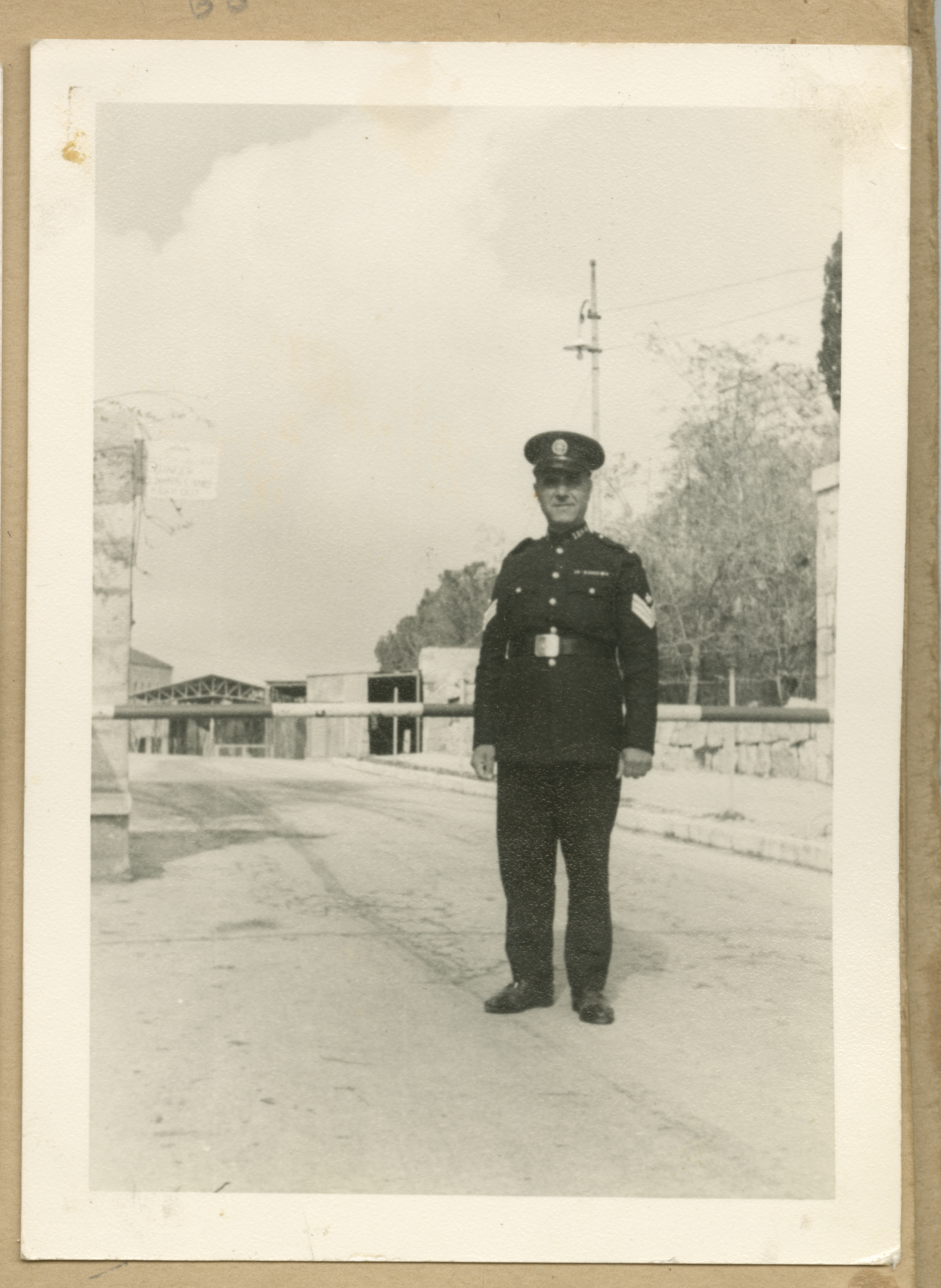 مسؤول بوّابة مندلبوم فطين جابر أمام البوّابة مغلقةً بعد انتهاء الدوام،بين عامي 1962 و 1968