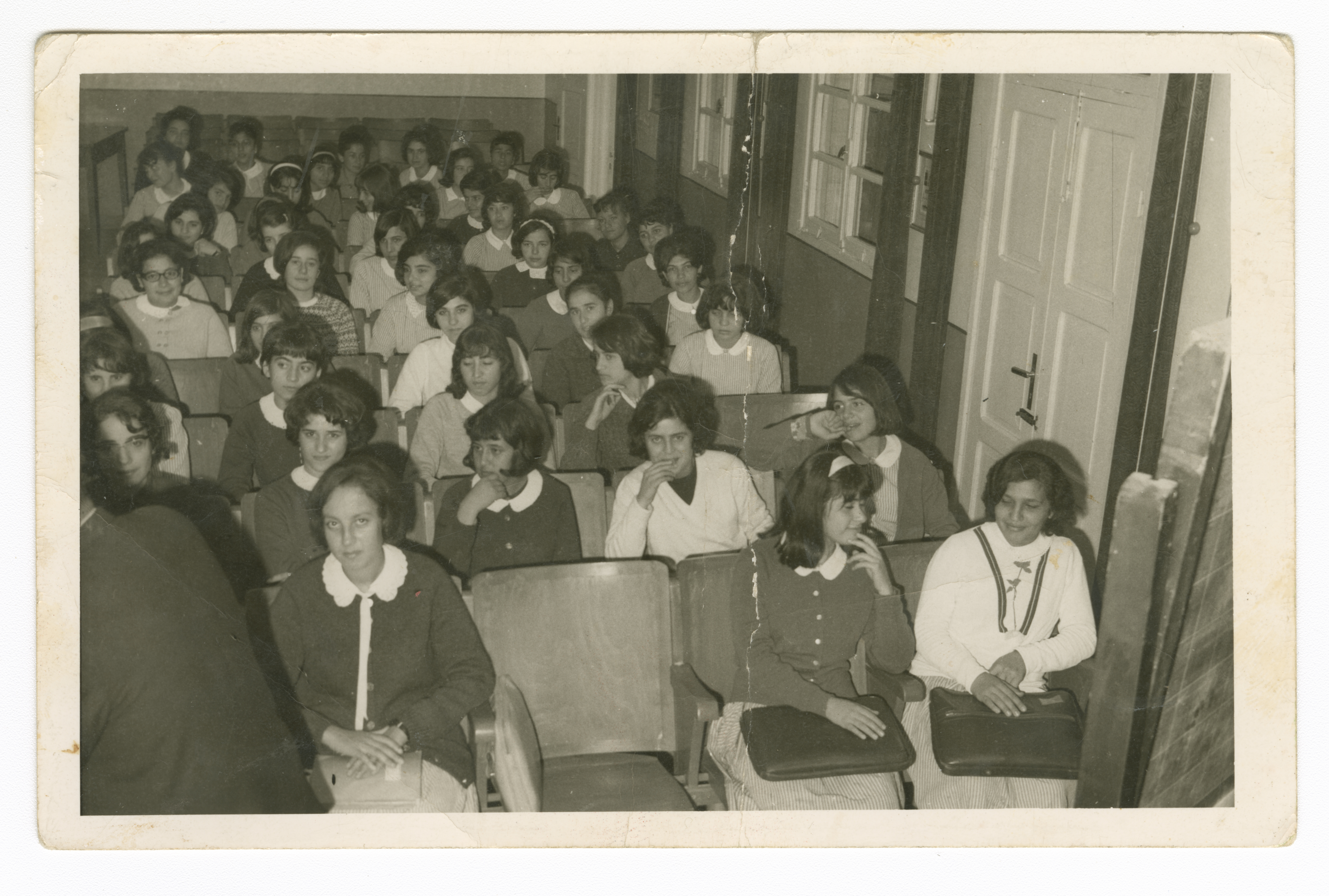 طالبات المدرسة العائشية في نابلس، ويظهر في اللقطة سناء عبد الهادي وأمنة البواب (الصف الثاني من اليسار)، مريم المصري (الثالثة من الصف الثالث)، زينات عرفات ونهى الطاهر وشفق إرشيد (الصف الخامس من اليسار)