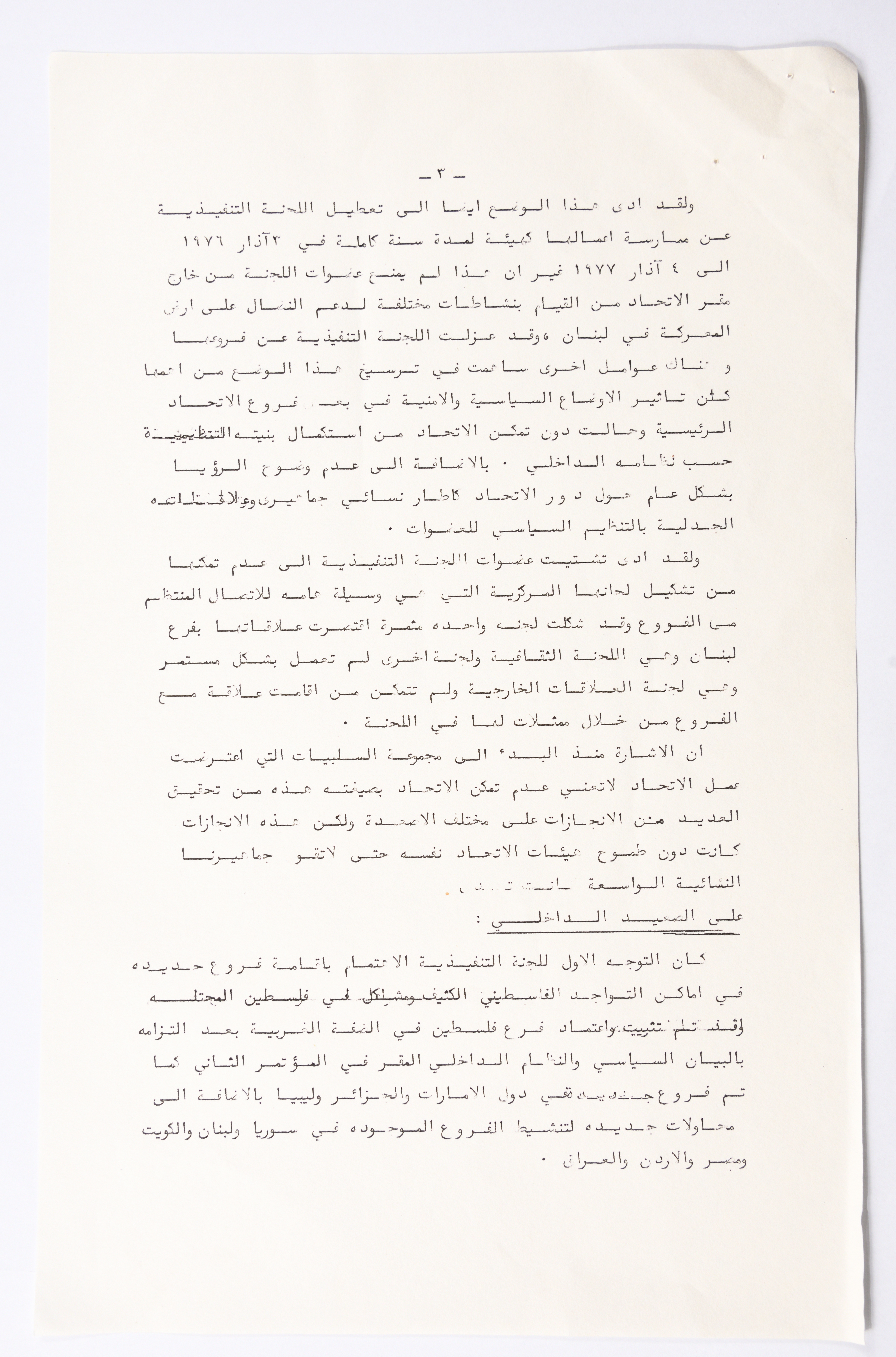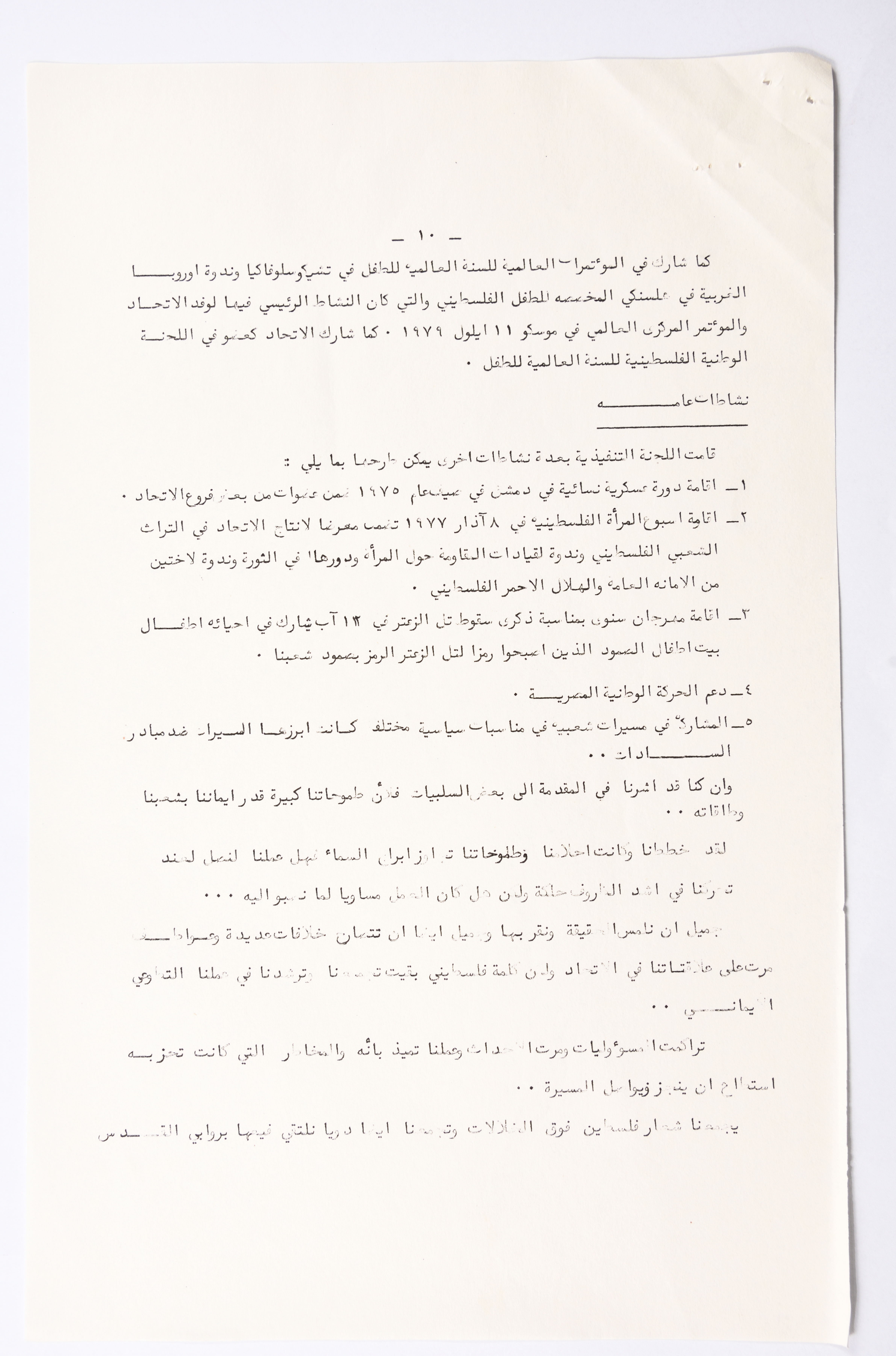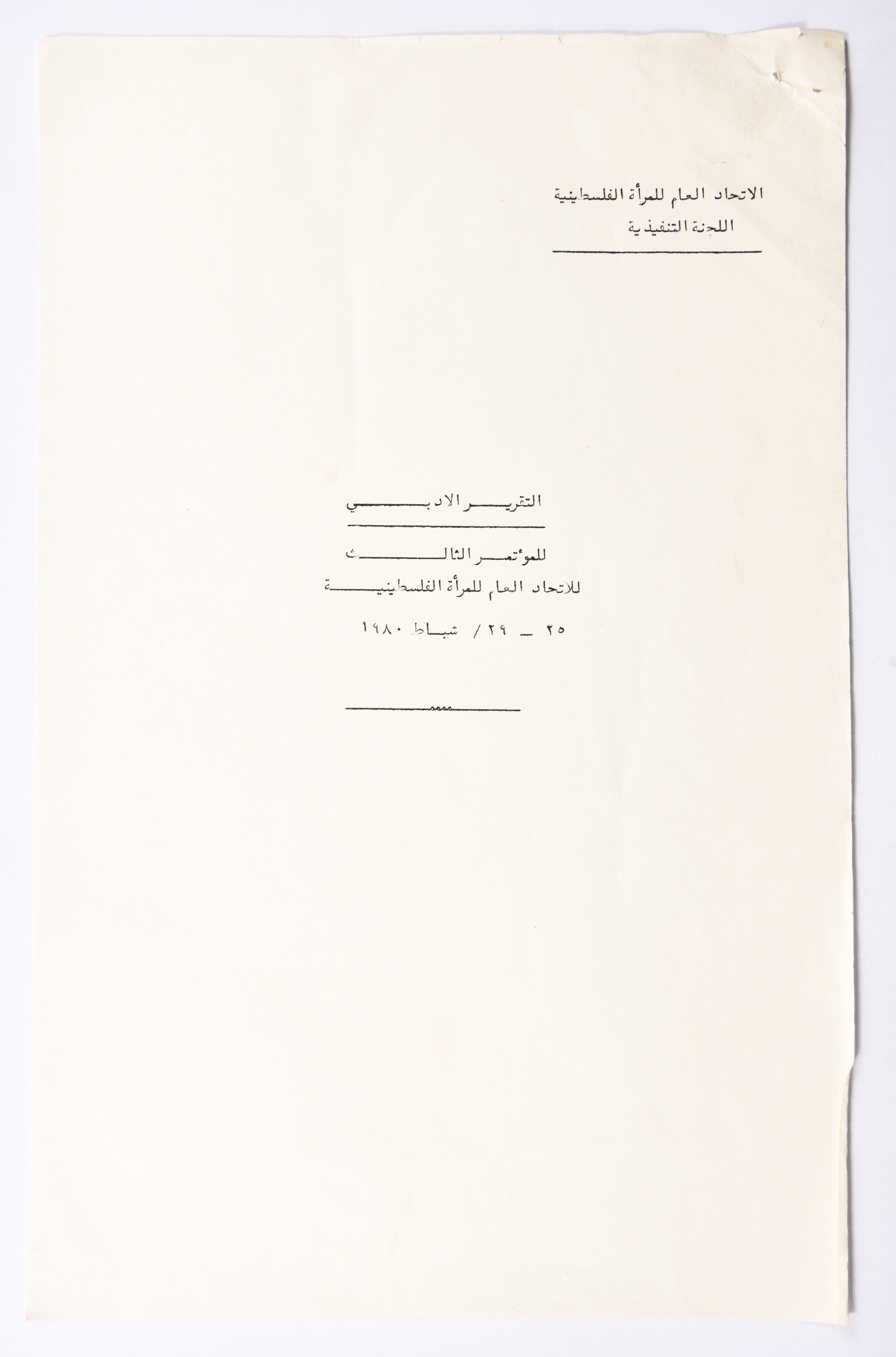 التقرير الادبي للمؤتمر العام الثالث للاتحاد العام للمرأة الفلسطينية الذي تم عقده في بيروت عام 1980