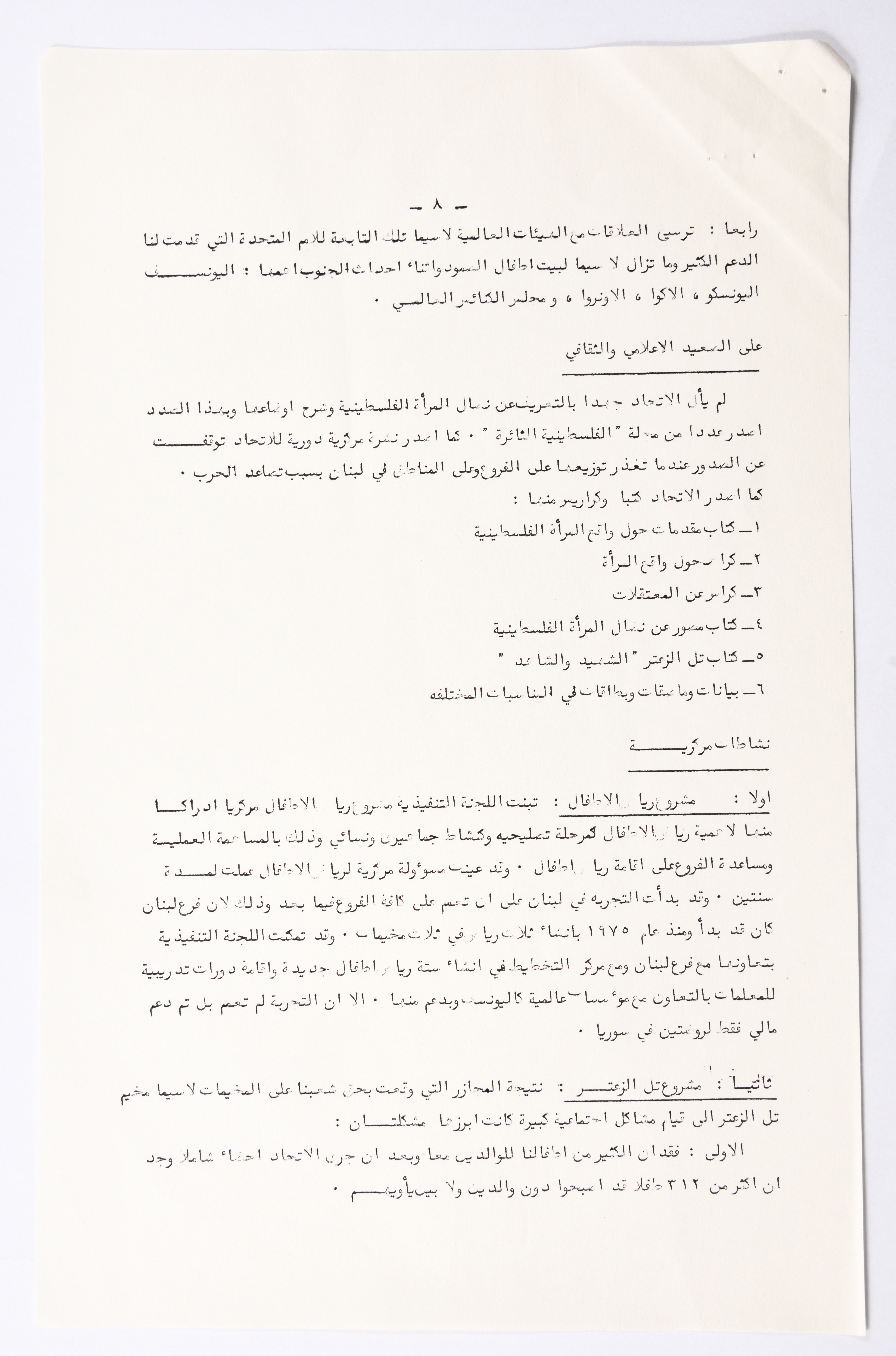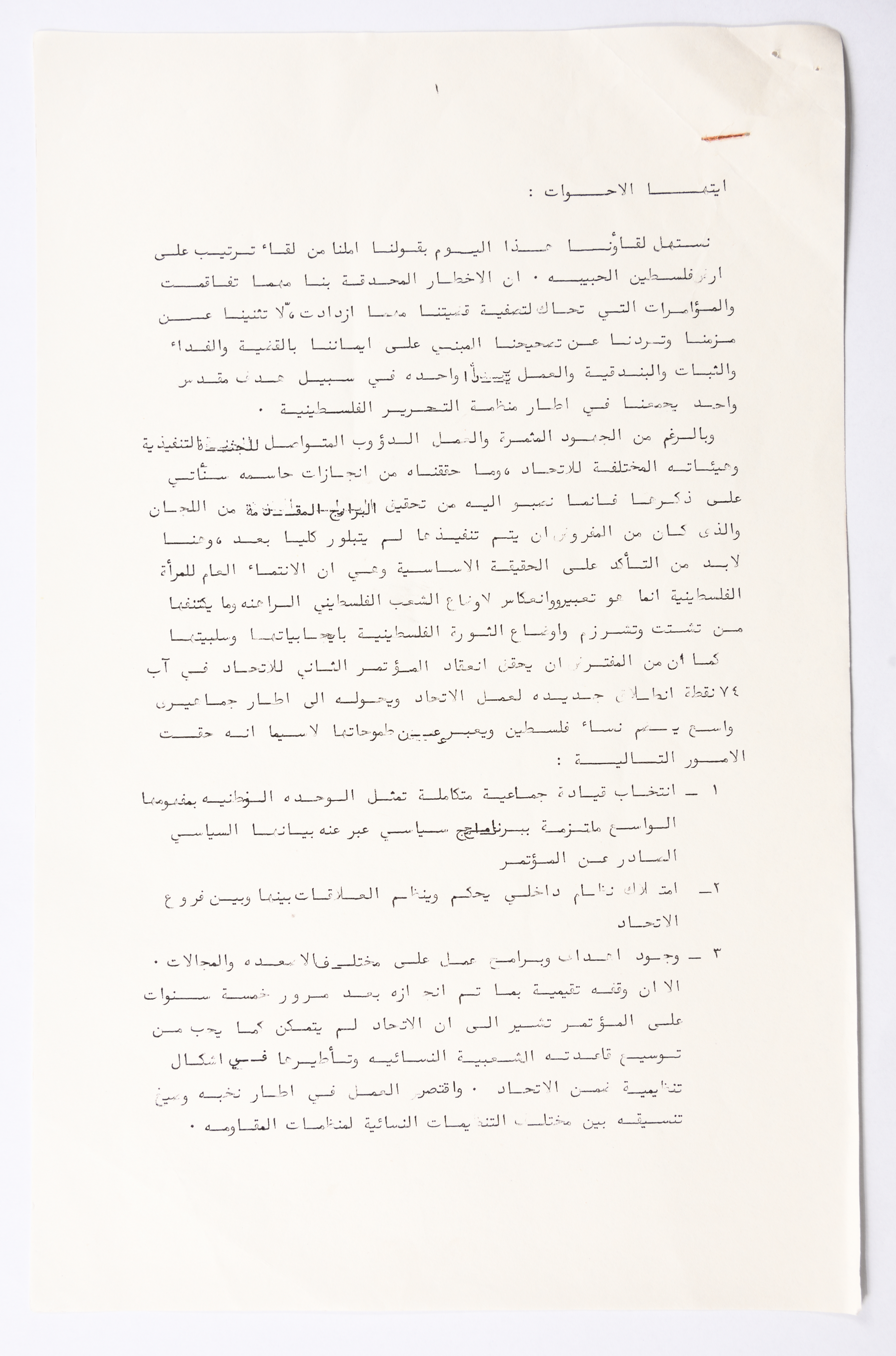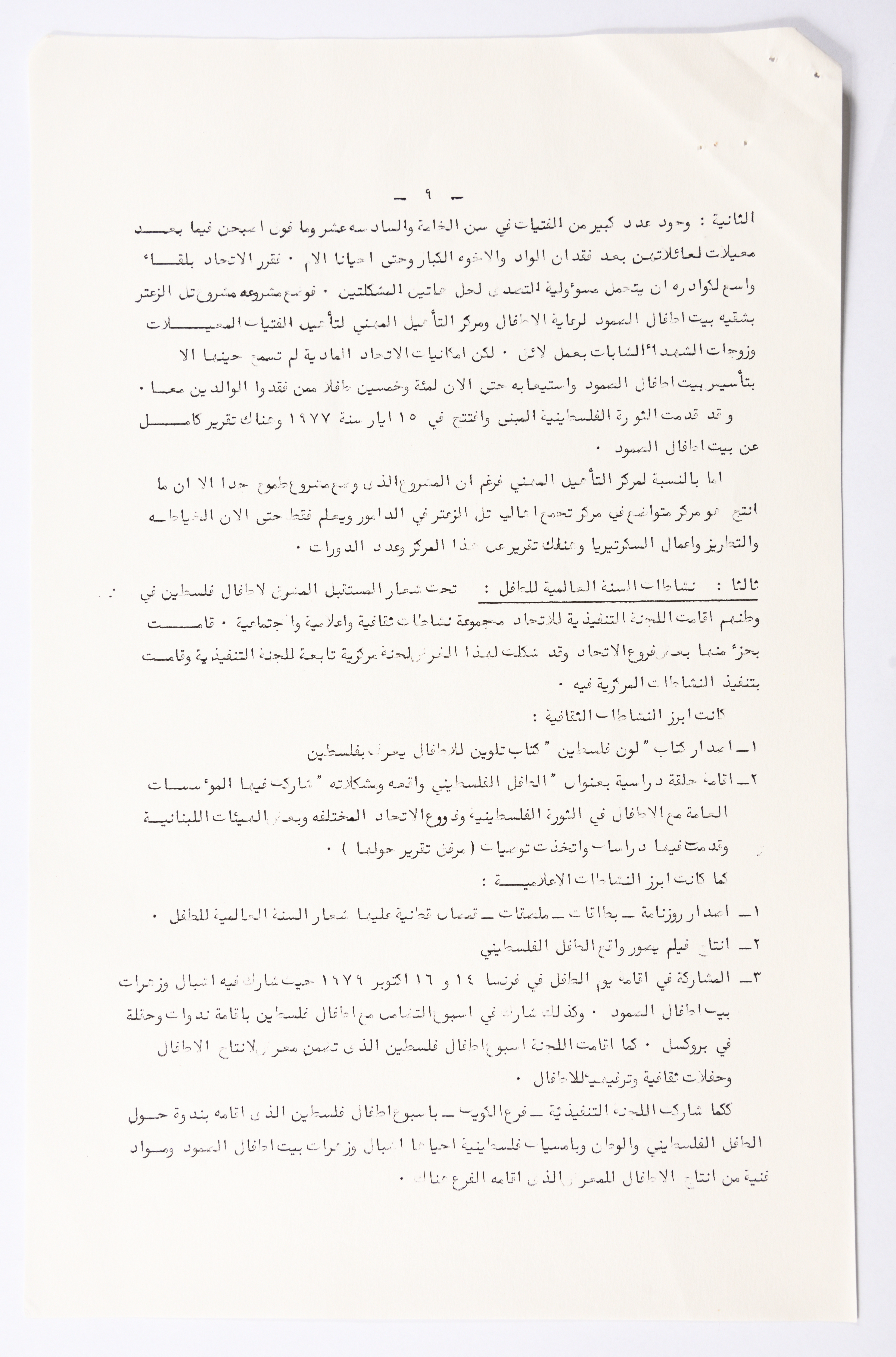 التقرير الادبي للمؤتمر العام الثالث للاتحاد العام للمرأة الفلسطينية الذي تم عقده في بيروت عام 1980