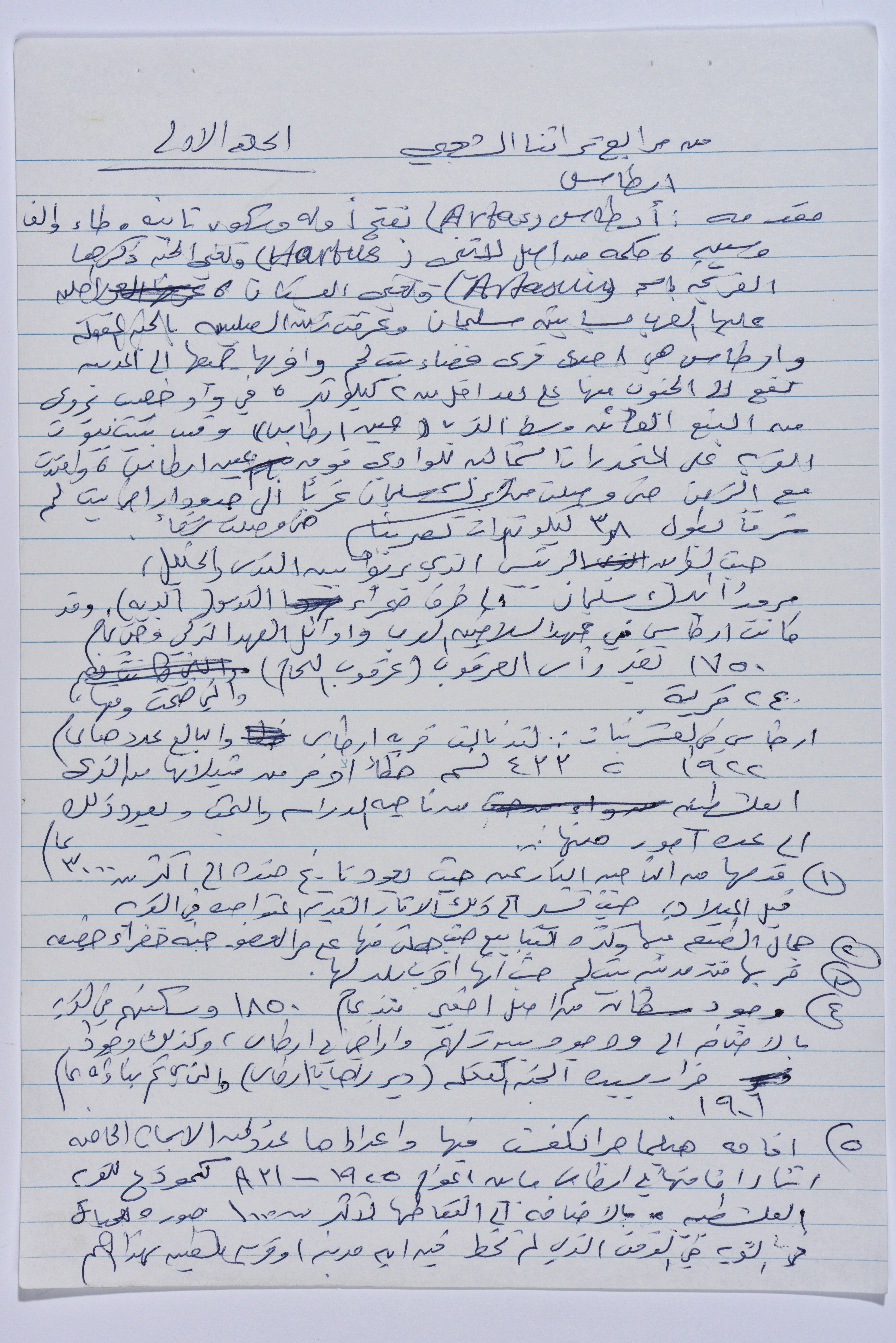 وثيقة كتب فيها عن قرية أرطاس وعن أصل ومعنى تسميتها، ومن سكنها، وتتحدث الوثيقة عن تاريخ القرية وصولاً إلى العصر الحديث. هذه الوثيقة وجدت ضمن وثائق كتبها الباحث موسى سند.